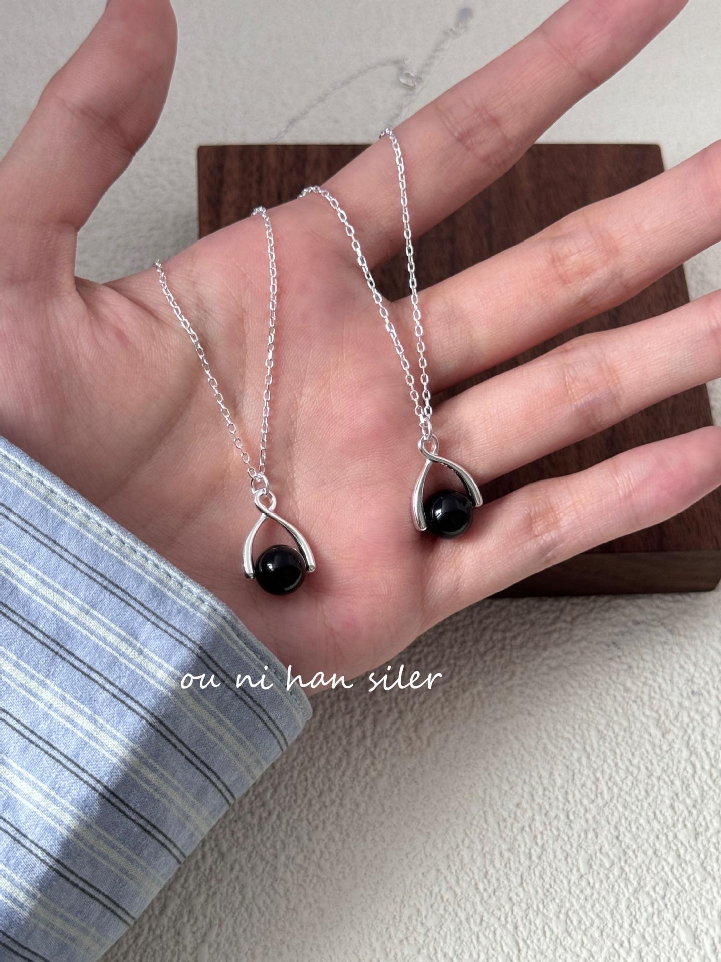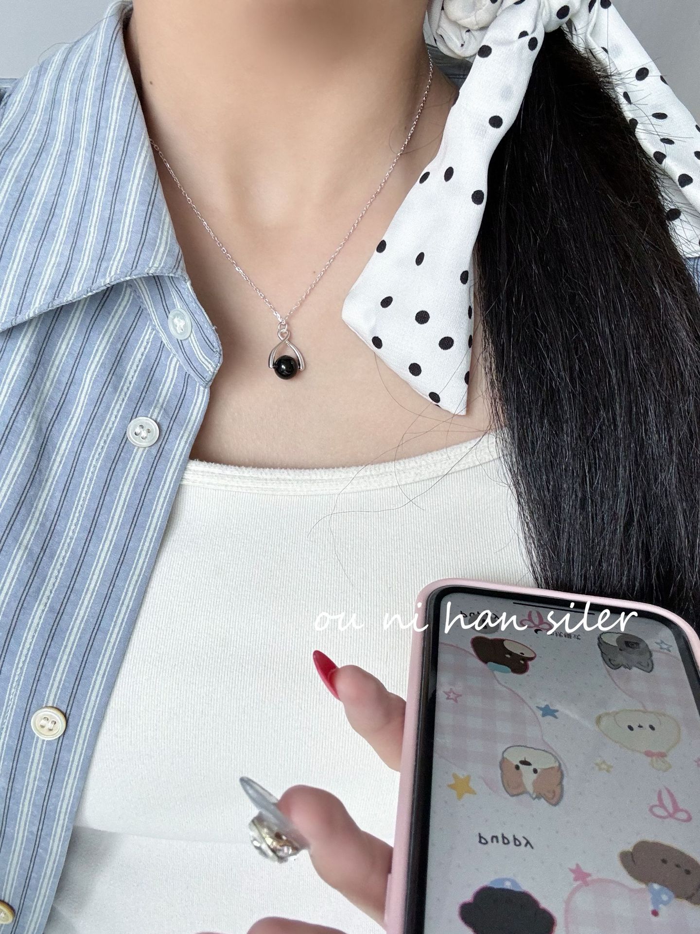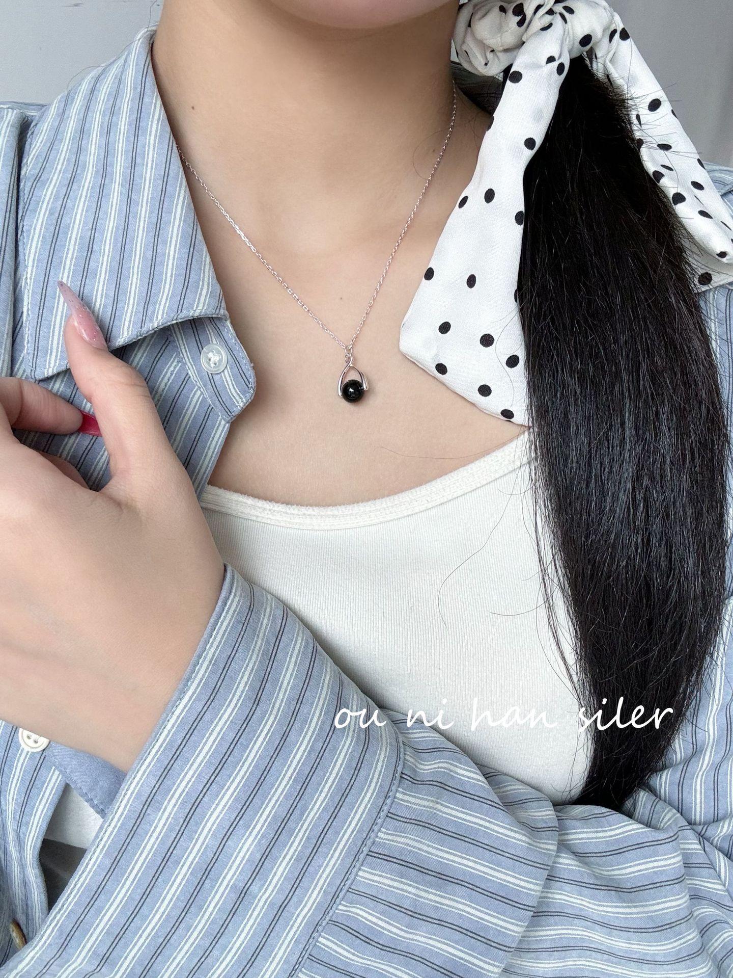 Collar Oni estilo coreano Ins para mujer, plata de ley S925, cruz de ágata negra, personalidad, nicho, cadena de clavícula de alta gama