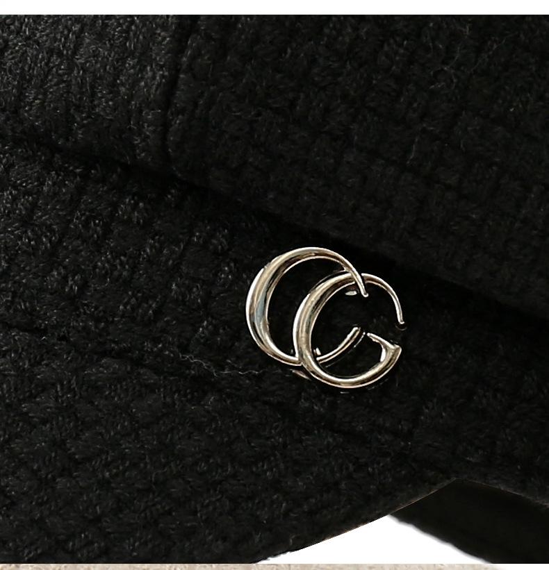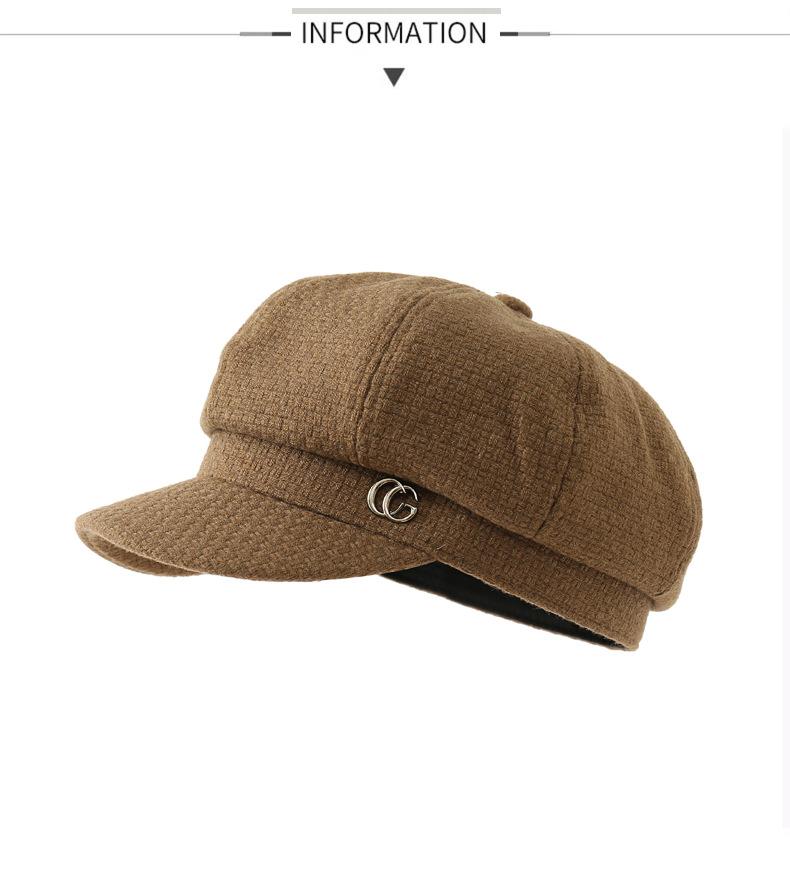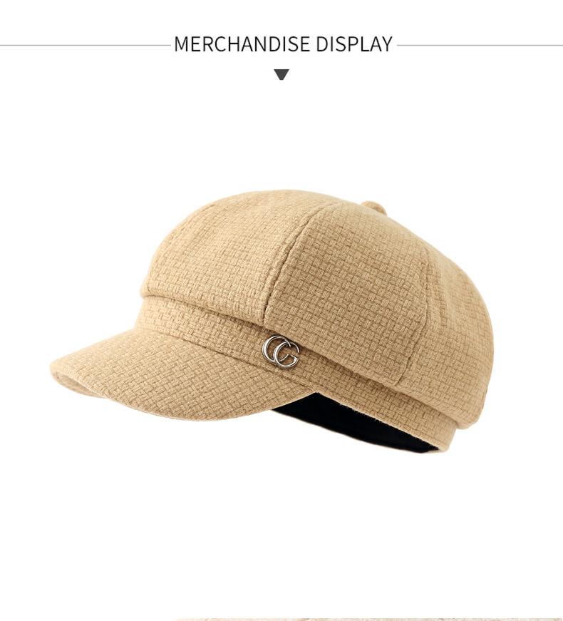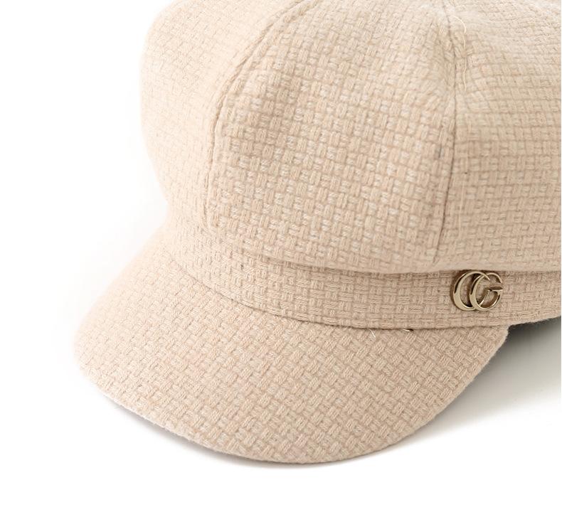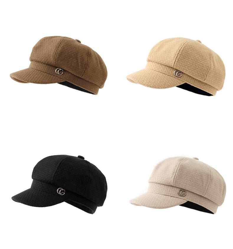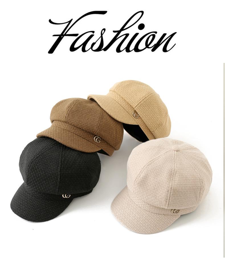 Sombrero de otoño e invierno estilo coreano Nuevo sombrero moda femenina combinable estándar de metal gorra con visera estilo británico sombrero octogonal artístico retro moda