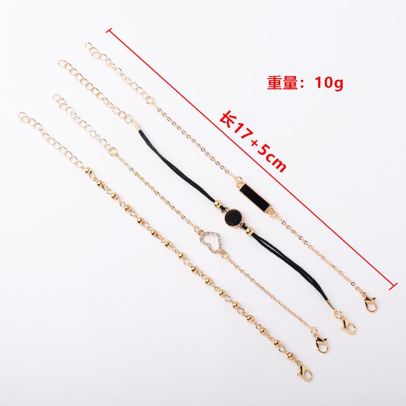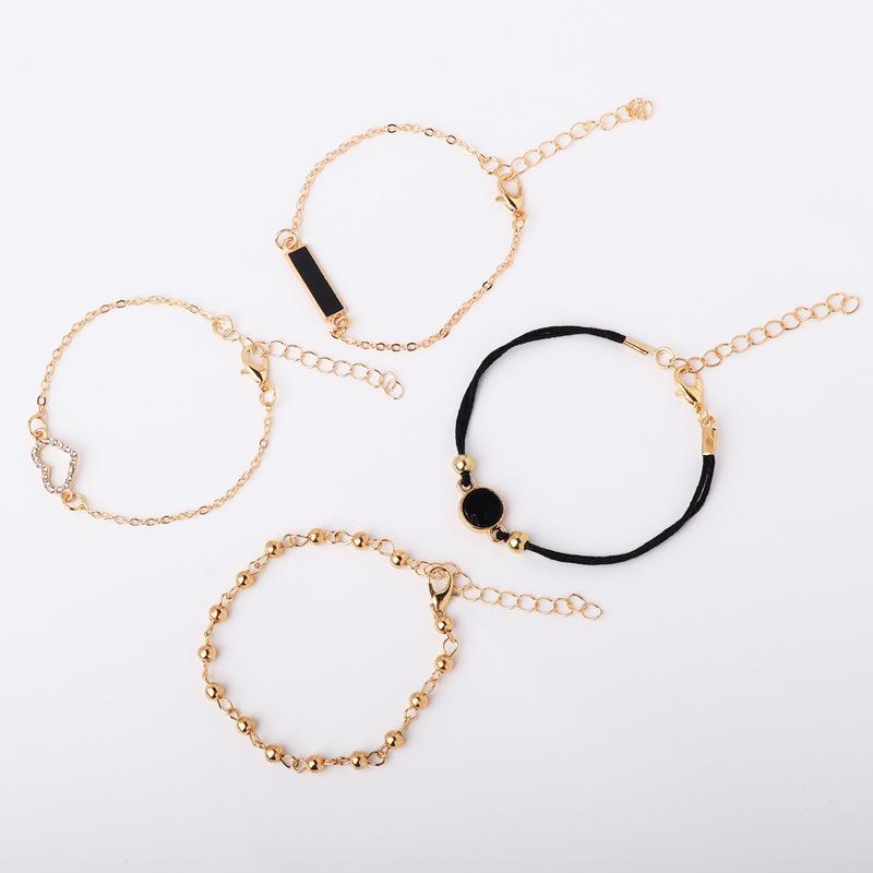 Pulsera de diamantes de amor estilo retro europeo y americano de moda, pulsera cuadrada pequeña de turquesa negra, juego de 4 piezas de joyería al por mayor.