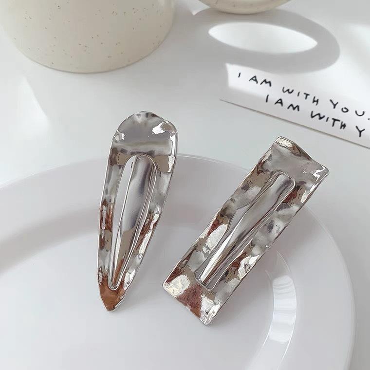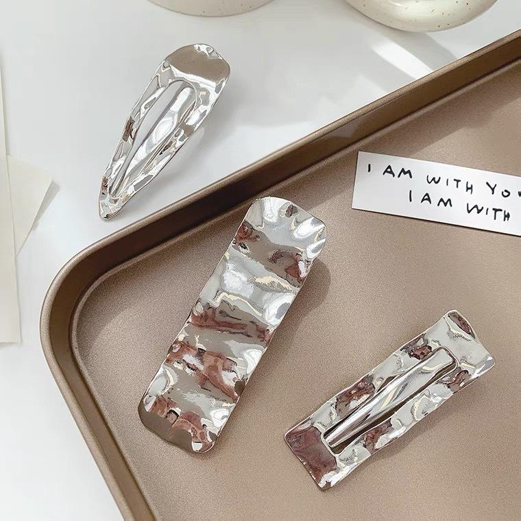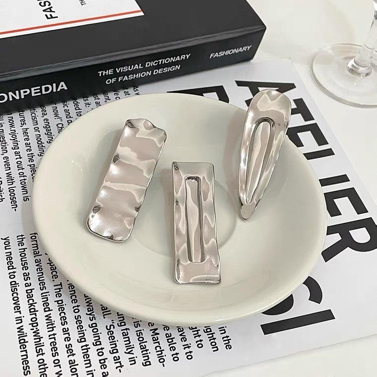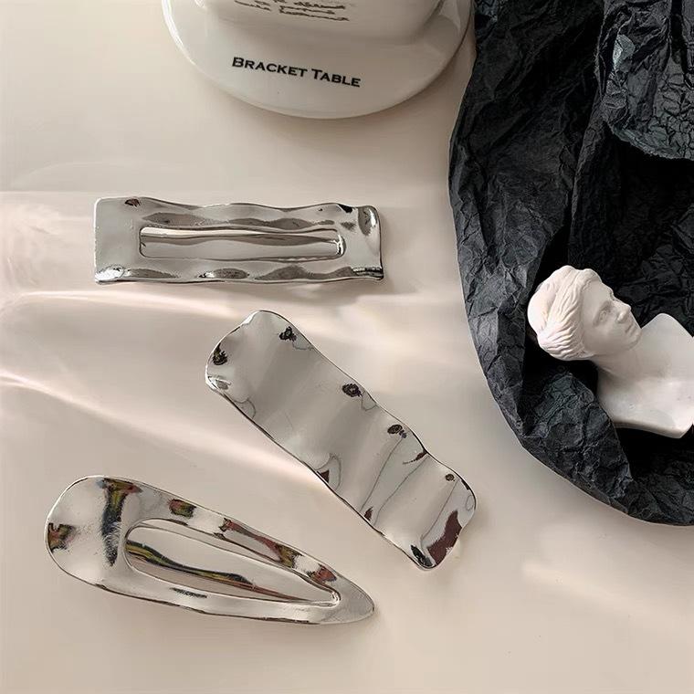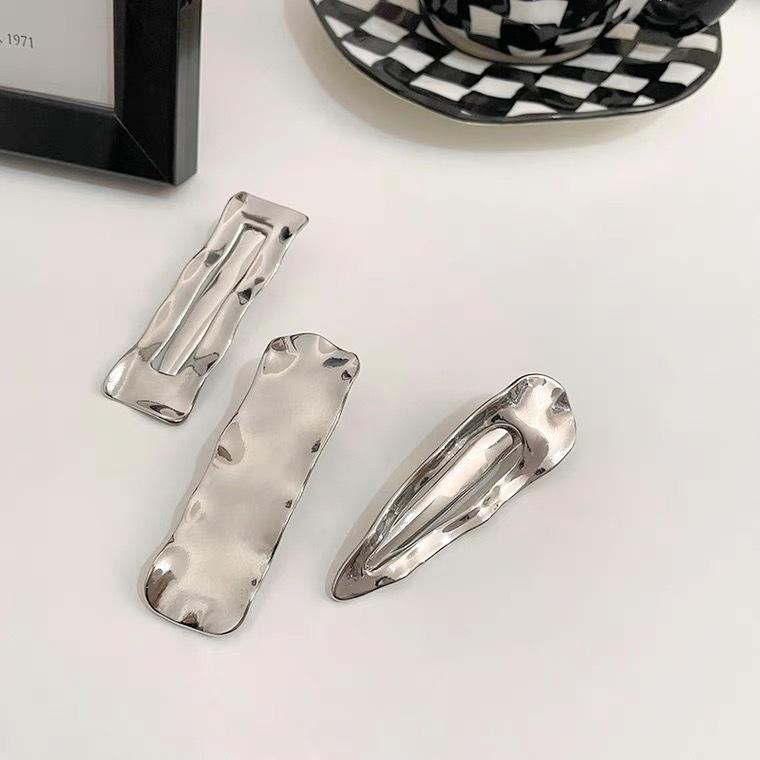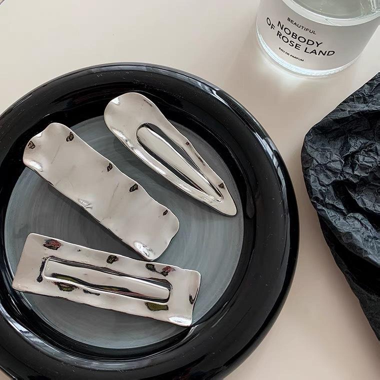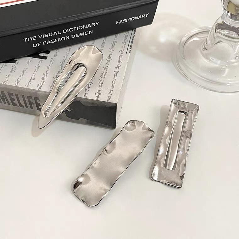 Horquilla de una sola palabra con ondas plateadas elegantes de celebridades de Internet, pinza para el flequillo con cabello roto lateral para mujer, horquilla de viento frío, tocado con pinza lateral