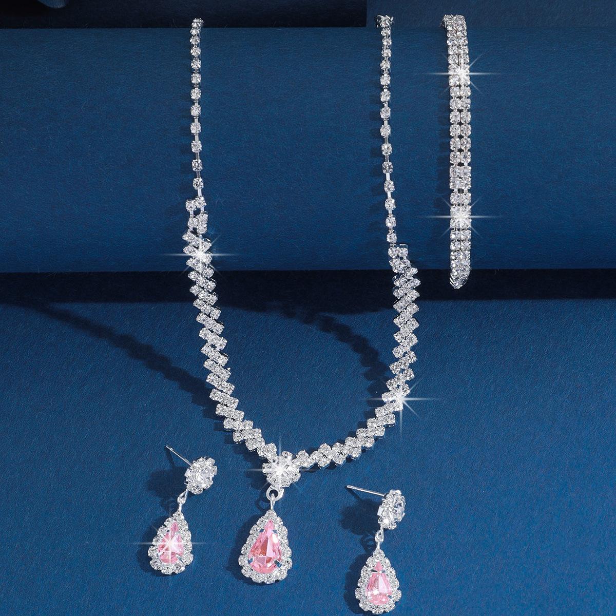 Accesorios de boda para mujer, pendientes, collar, pulsera, joyería nupcial de tres piezas, accesorios de lujo de alta gama.