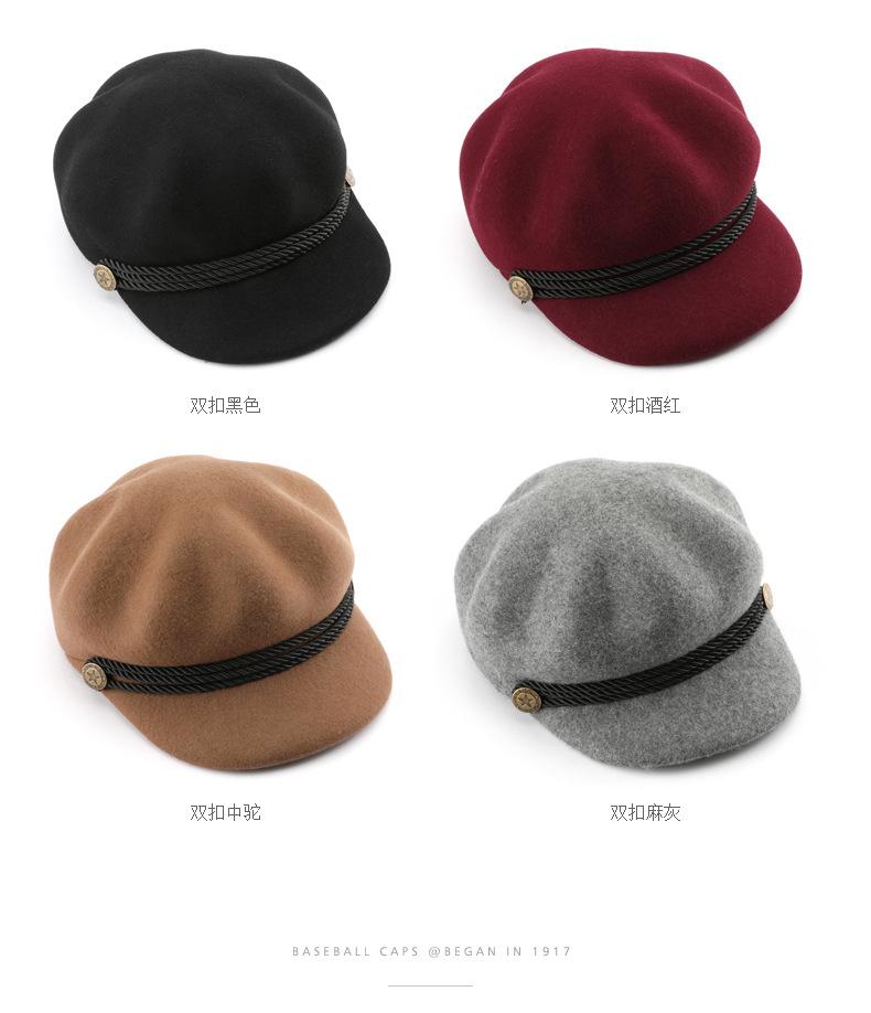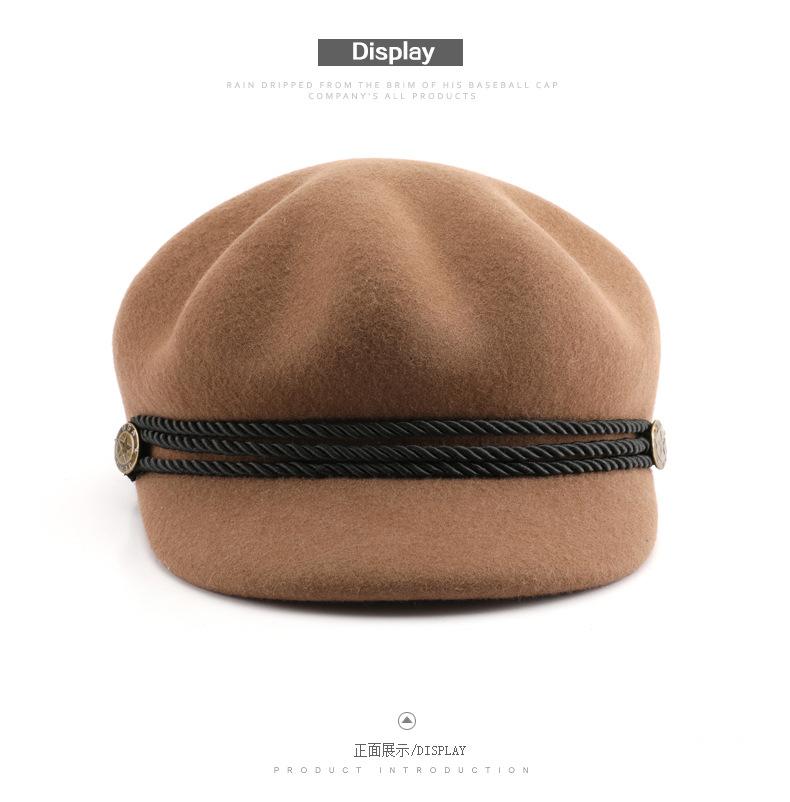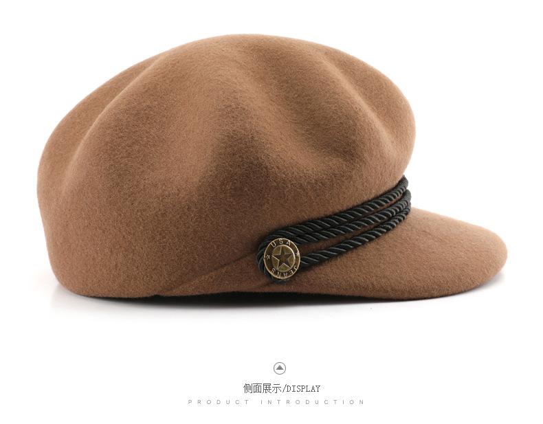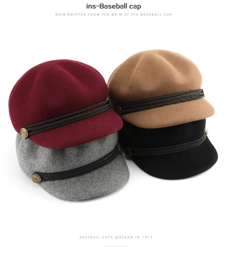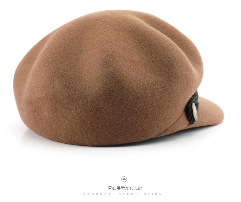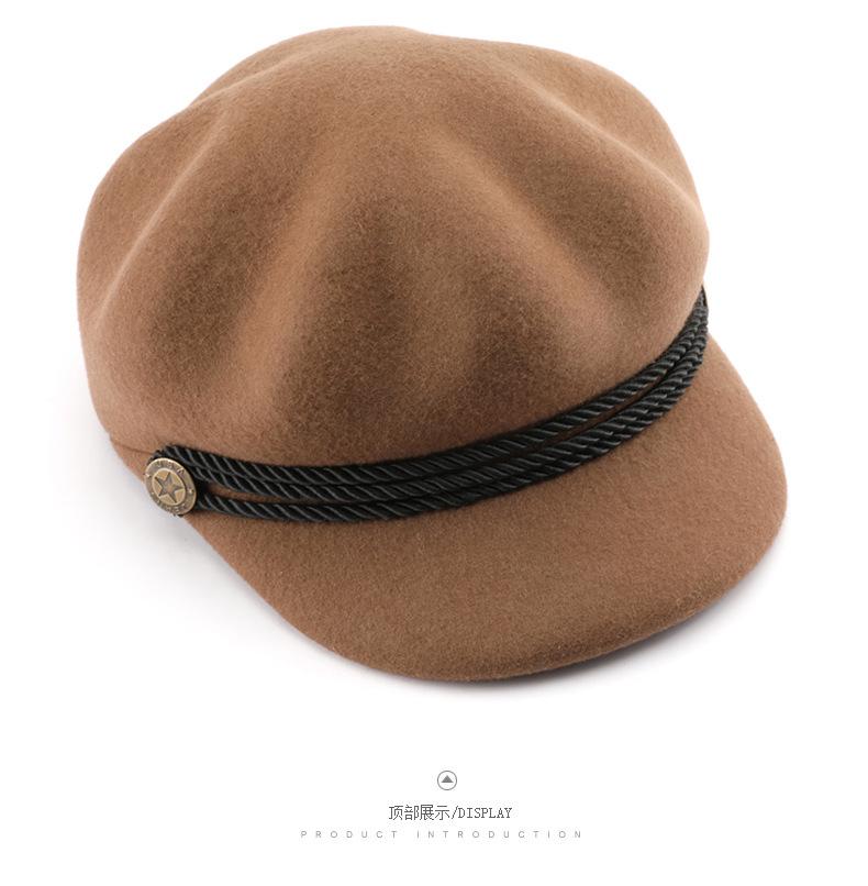 Boina de mujer otoño e invierno estilo coreano estilo japonés color sólido retro lana octogonal sombrero para viajes al aire libre deportes protección solar sombrero para el sol