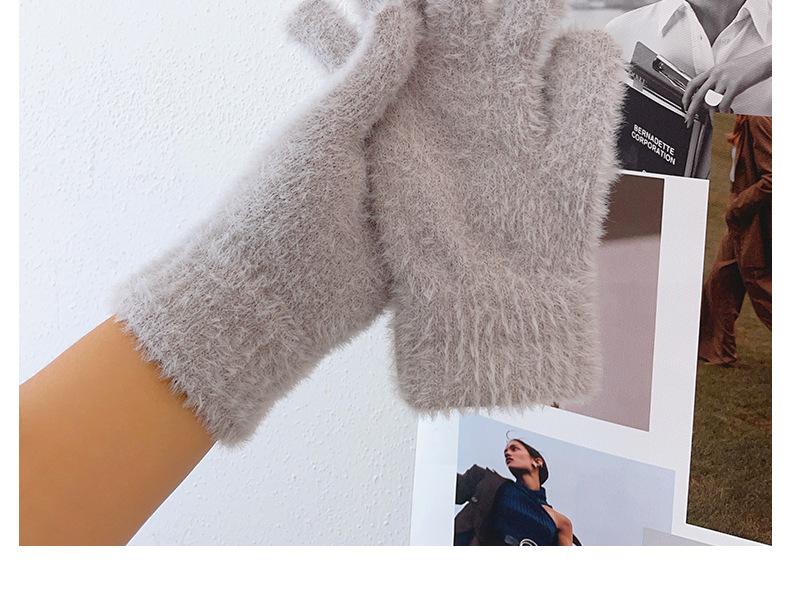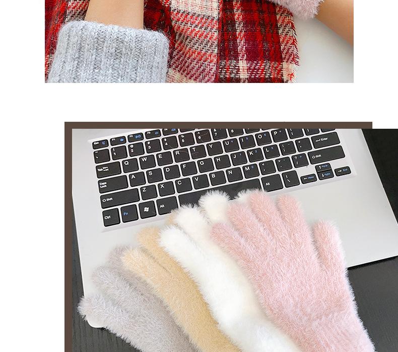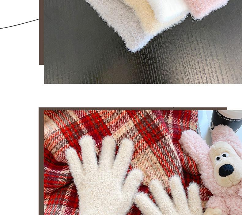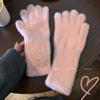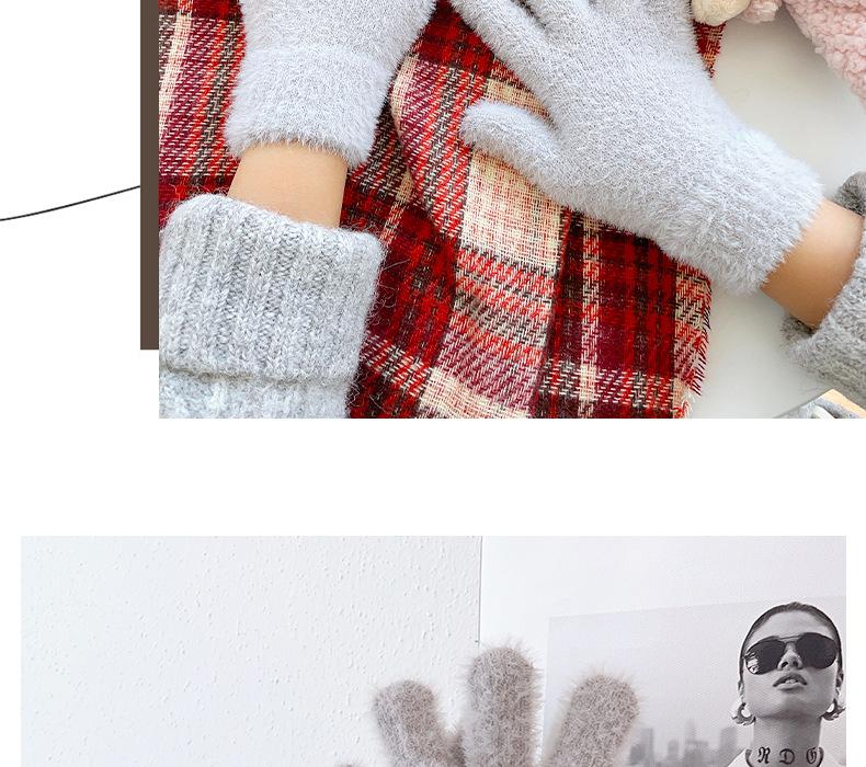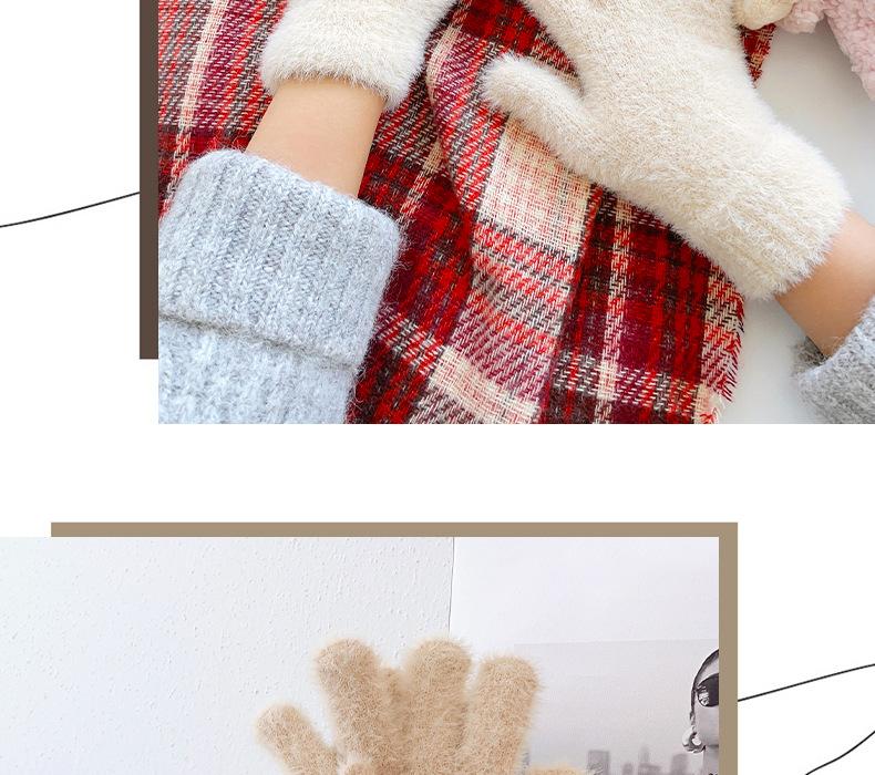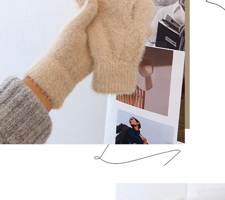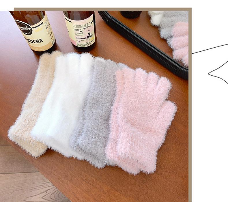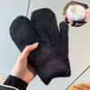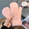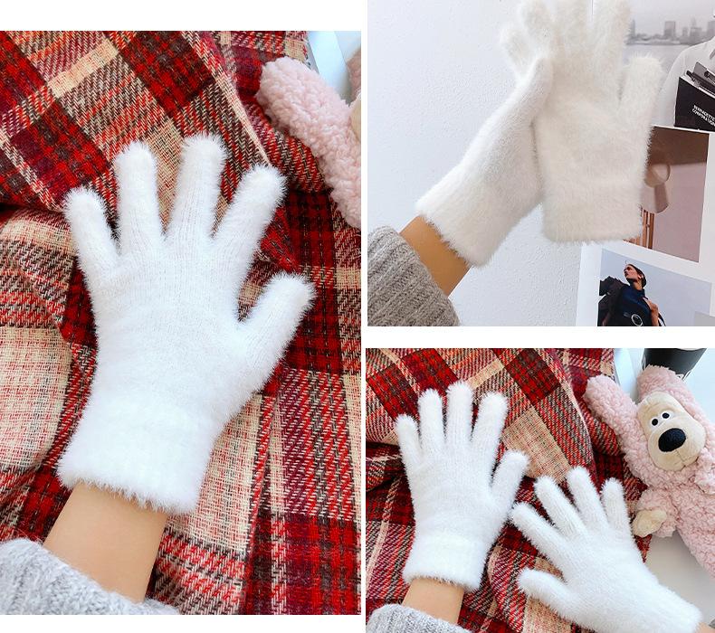 Guantes de felpa de lana tejida de piel sintética de conejo para mujer, invierno, estudiante, ins, lindos, forrados de vellón, cálidos, a prueba de frío, de cinco dedos, para ciclismo