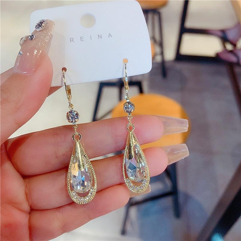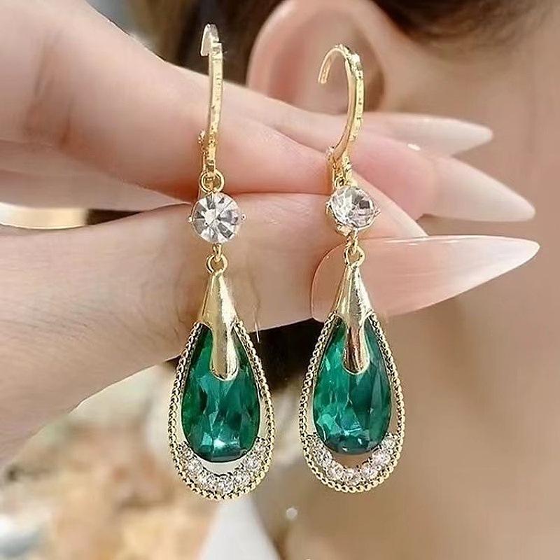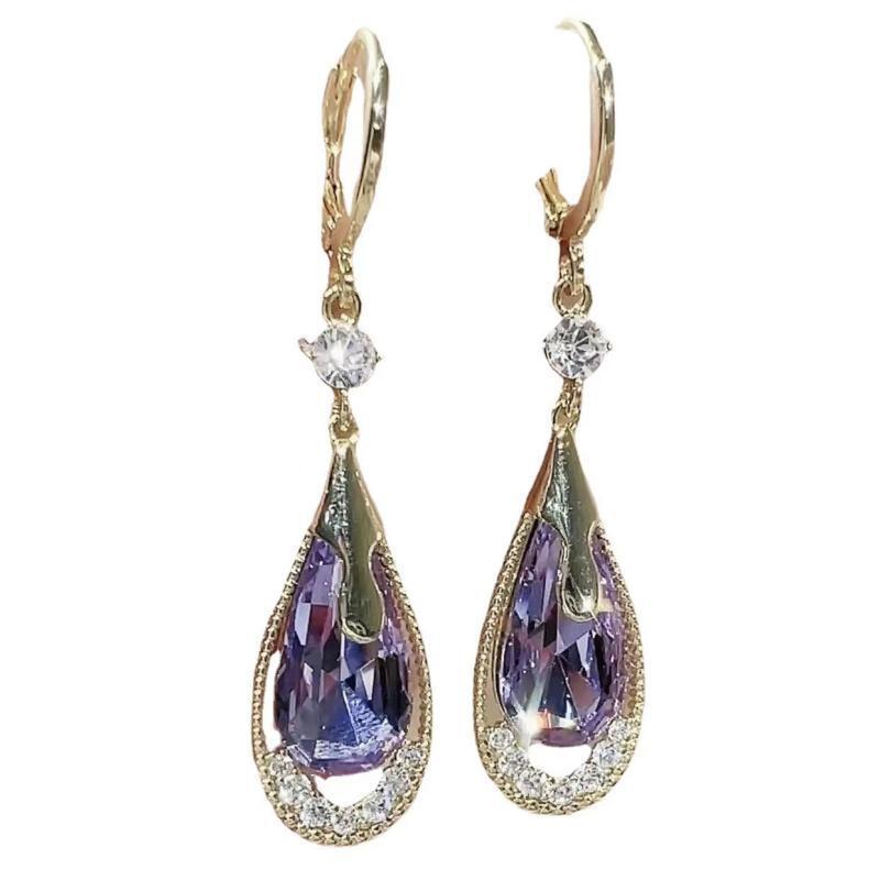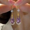 2025 Nuevos pendientes de moda de alta gama con cristales morados, hebillas colgantes, sencillos y atmosféricos, elegantes y a la moda.