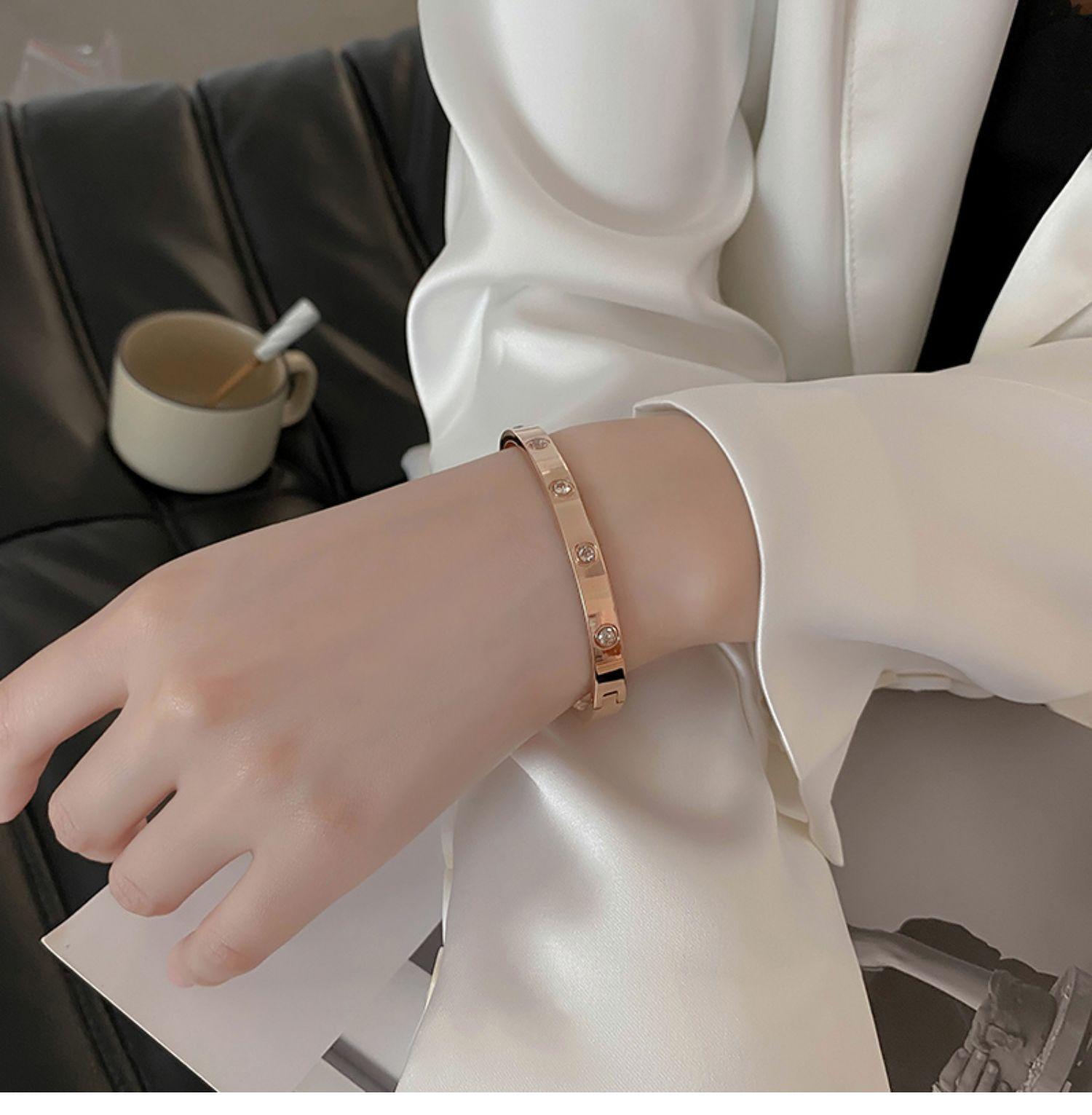 Pulsera de Pareja de Lujo Ligero de Alta Gama Acero de Titanio Apertura Diseño de Nicho Alta Gama Popular Popular Ins Marea Pulsera