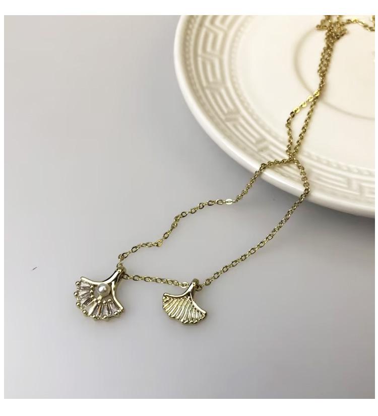 Collar de circón con hoja de ginkgo para mujer, cadena de clavícula con temperamento de nicho exquisito de verano, moda ligera de lujo 2022, nuevo al por mayor