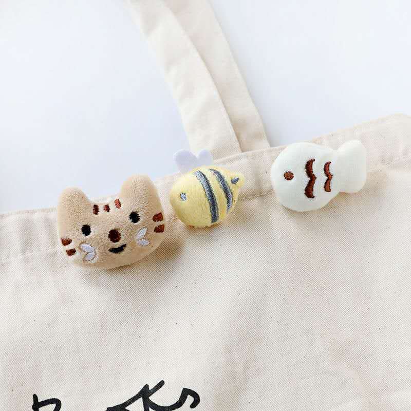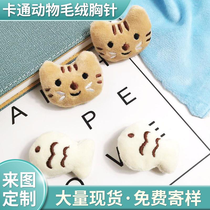 Broche de peluche de dibujos animados de estilo japonés de fábrica, alfiler para bolso de ropa, lindo gato, pez, abeja, accesorios de decoración al por mayor