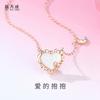 Collar original de plata de ley S925 con forma de corazón para mujer, con circonitas blancas y fritilarias, estilo Chanel, con lazo.