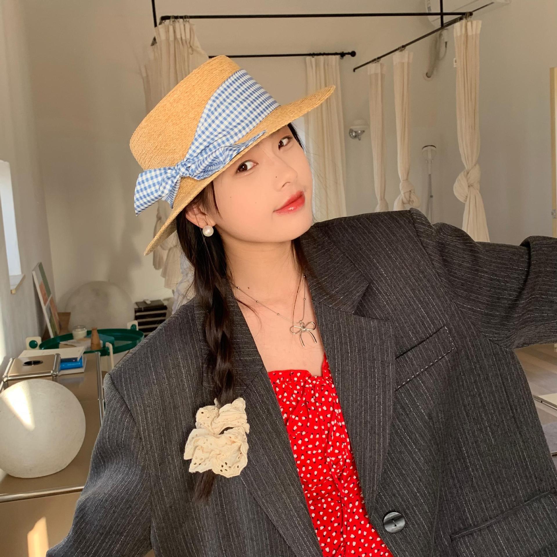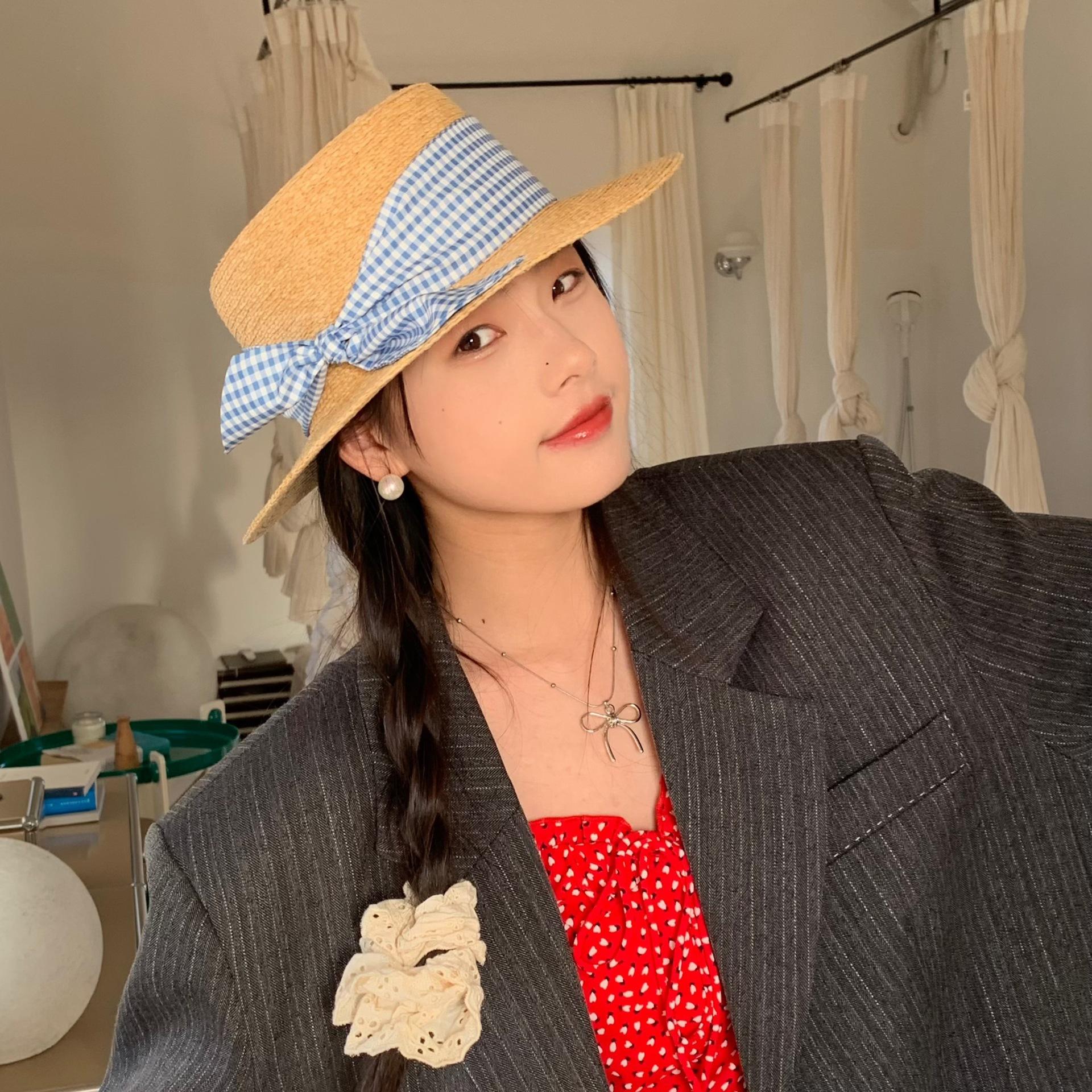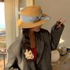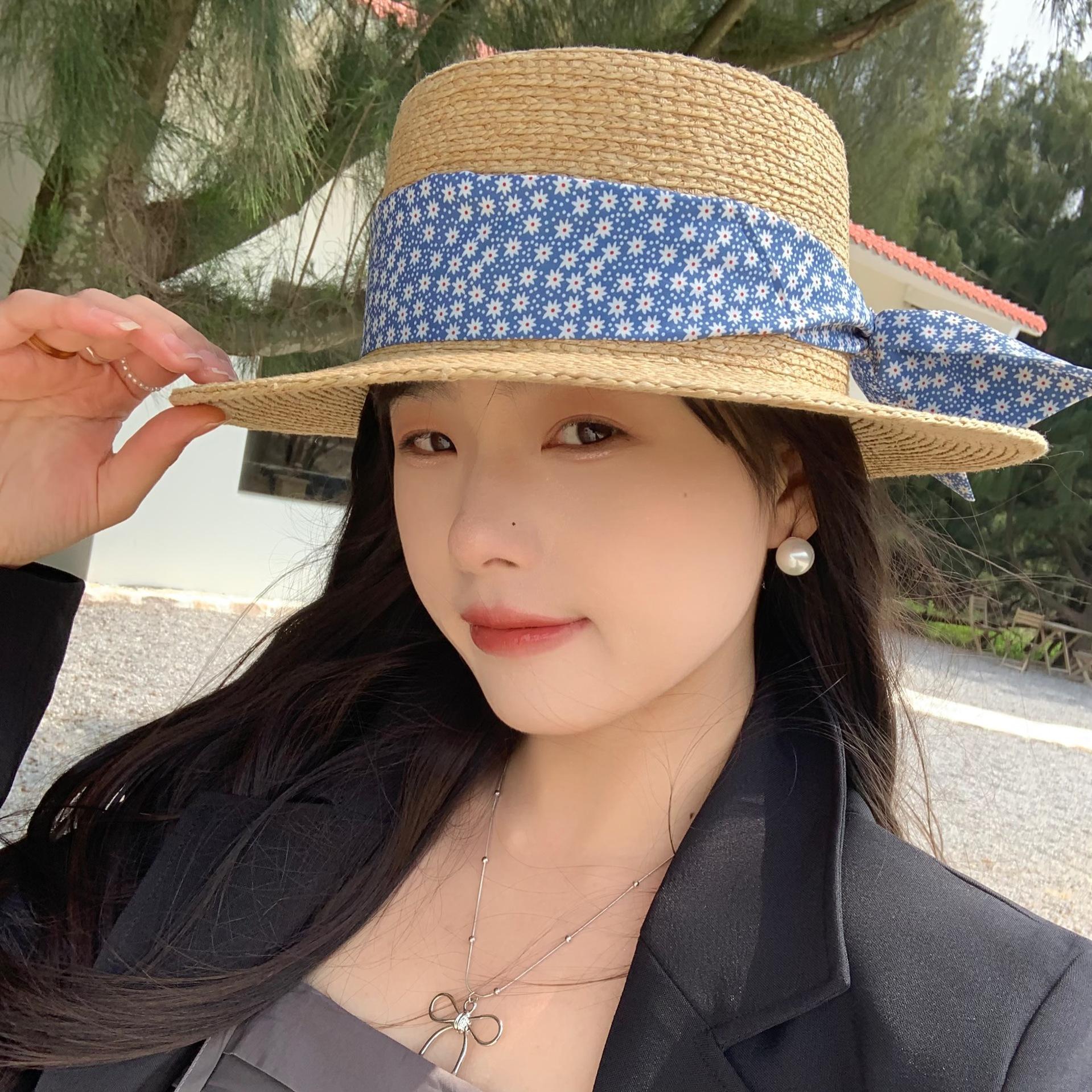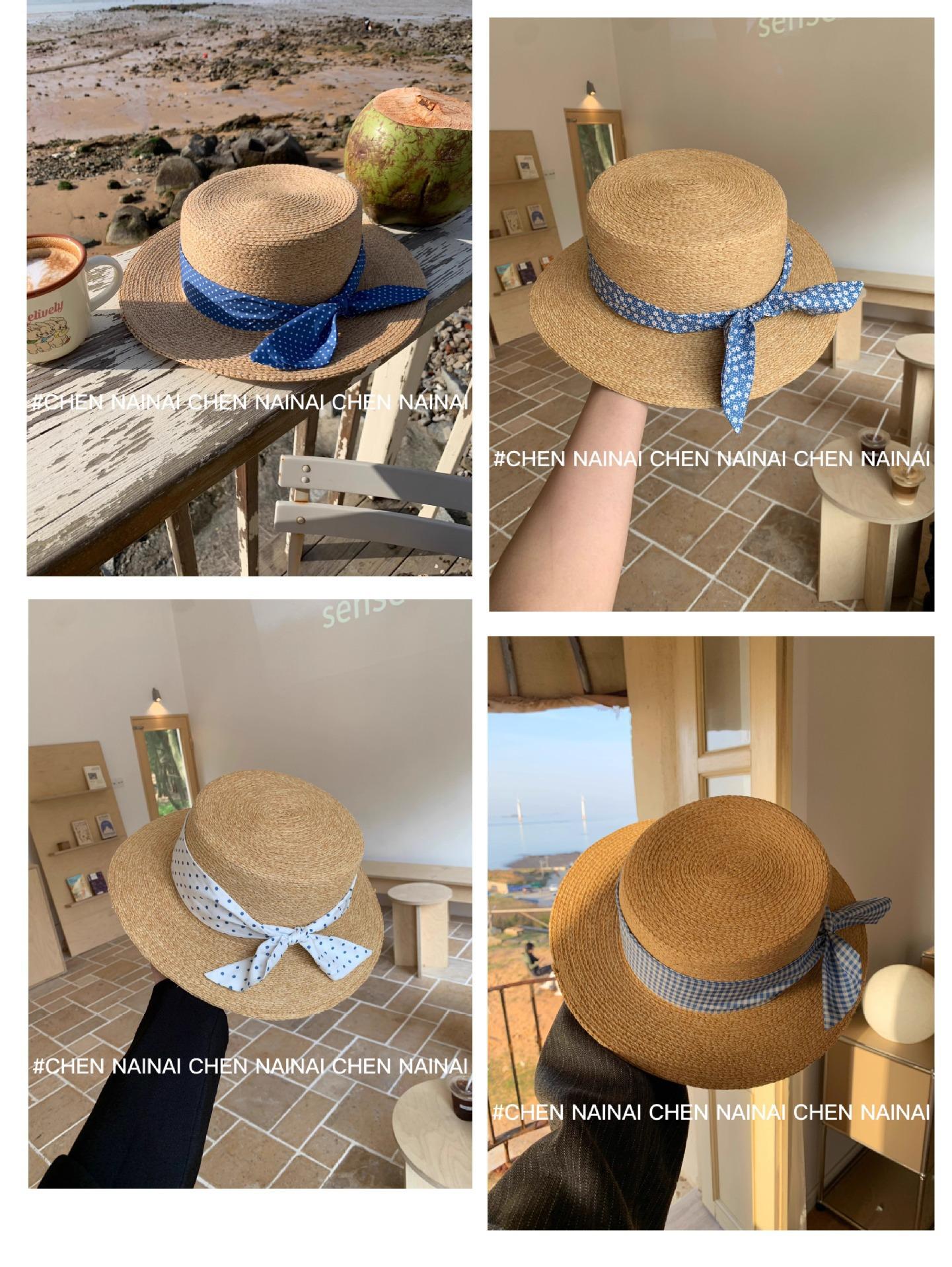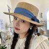 Sombrero Plano de Paja Rafafi con Lazo para Mujer Casual Vacaciones Nuevo Estilo Francés Sombrero de Paja con Lazo Sombrero Parasol