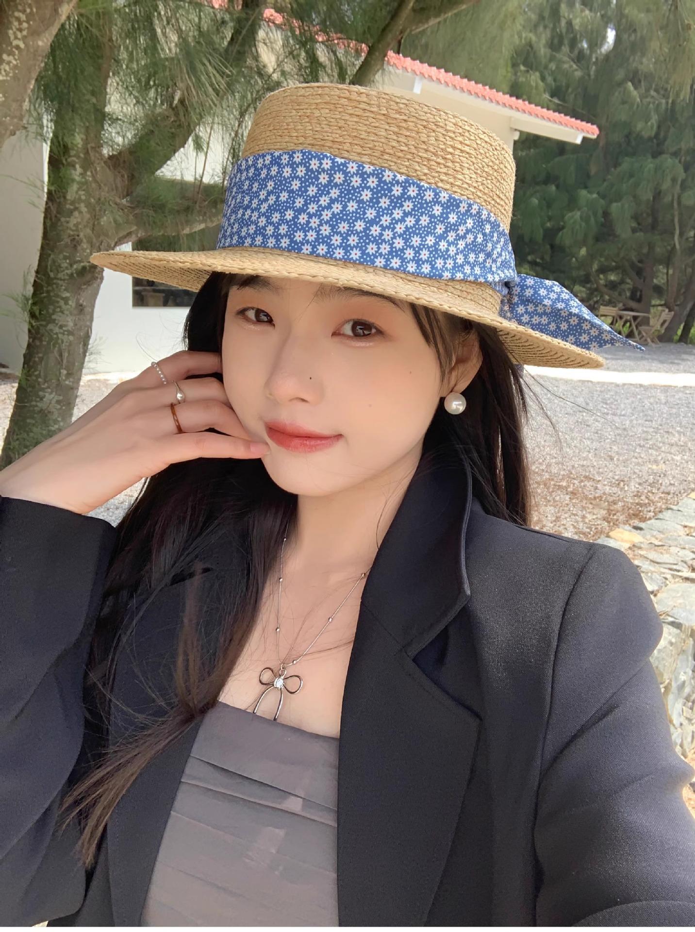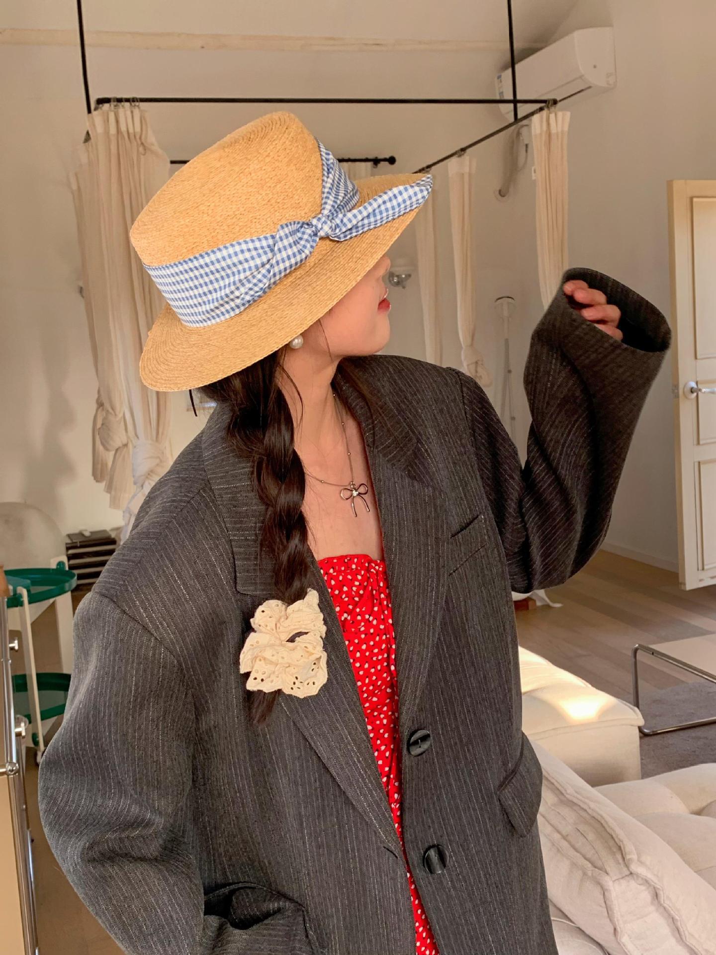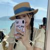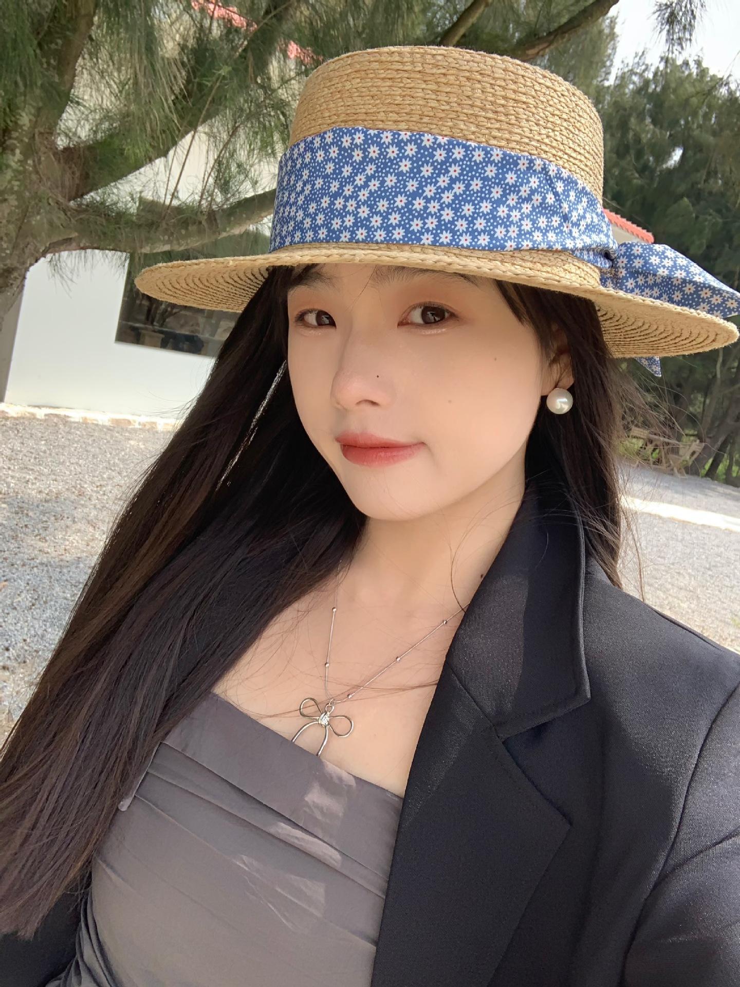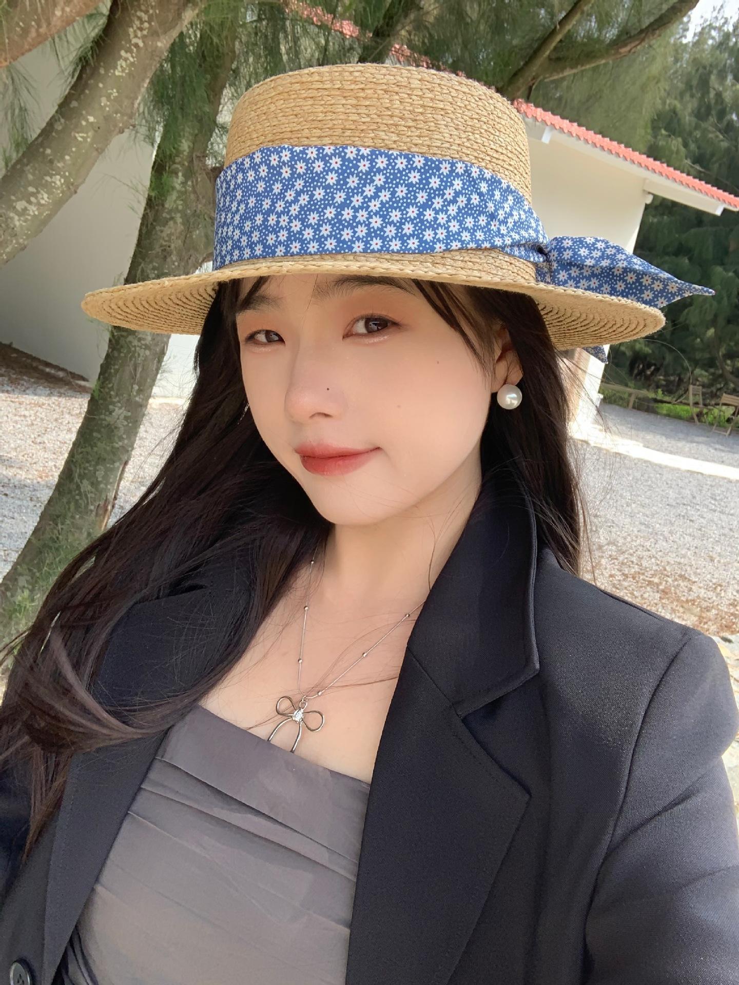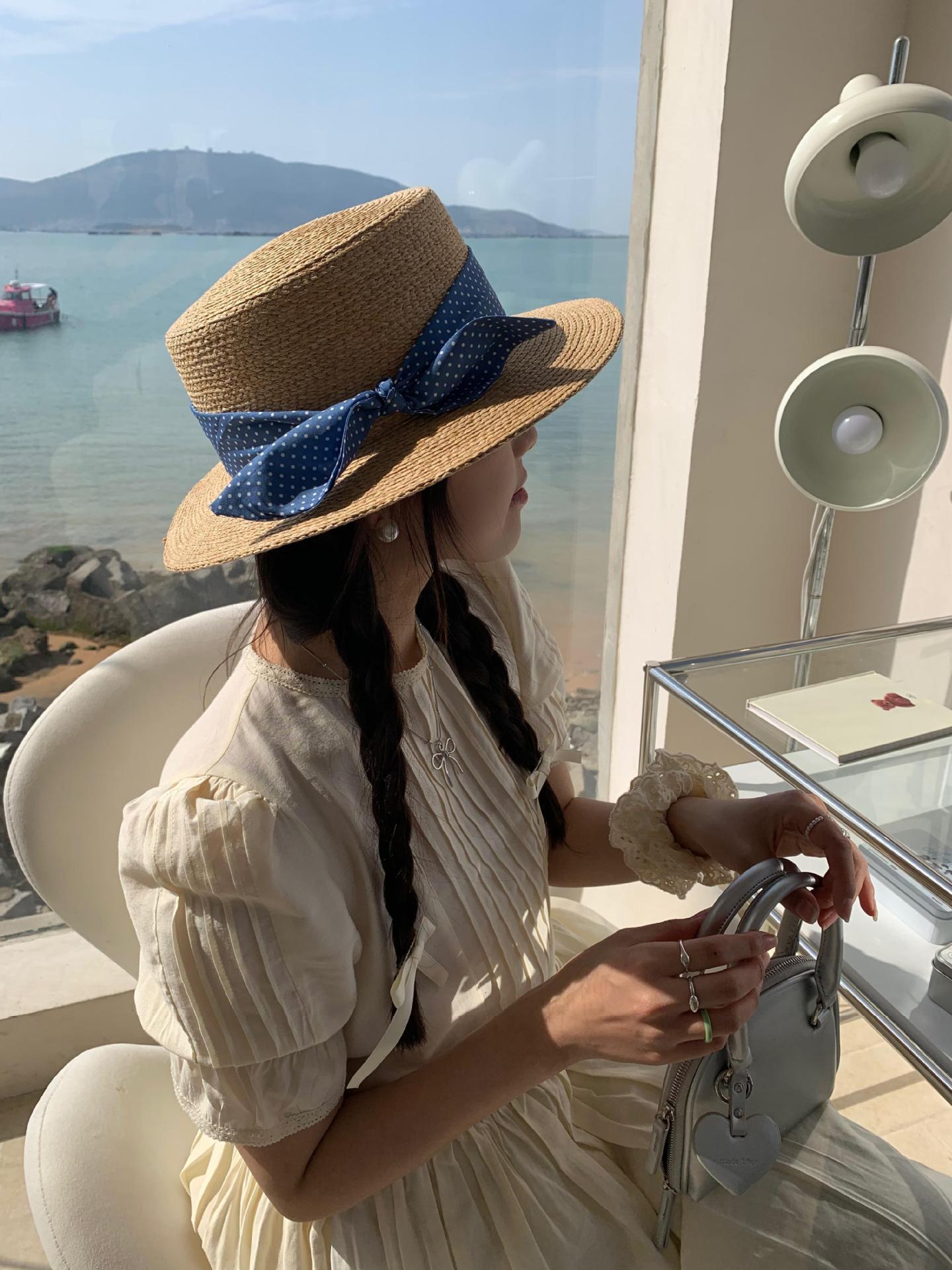 Sombrero Plano de Paja Rafafi con Lazo para Mujer Casual Vacaciones Nuevo Estilo Francés Sombrero de Paja con Lazo Sombrero Parasol