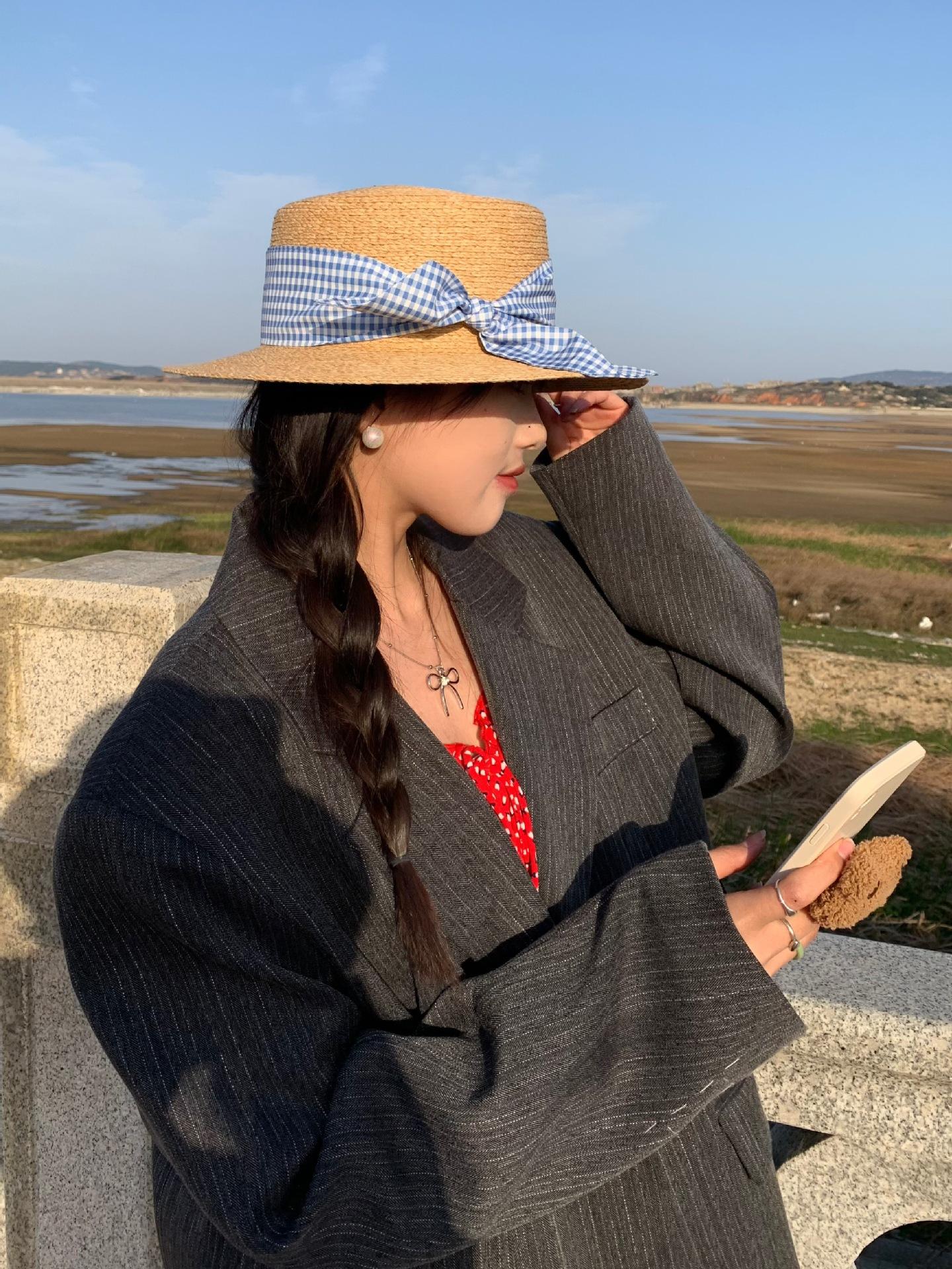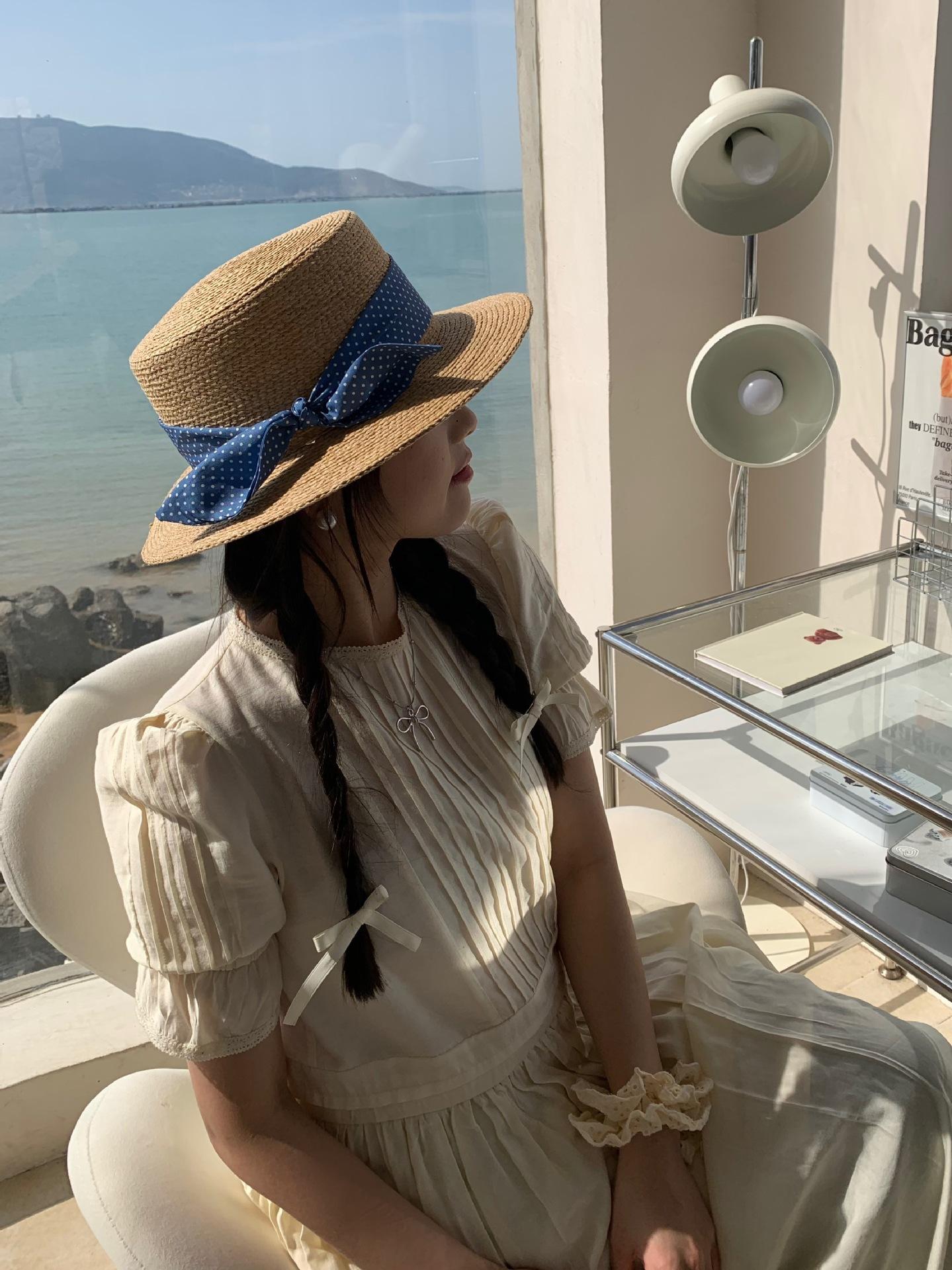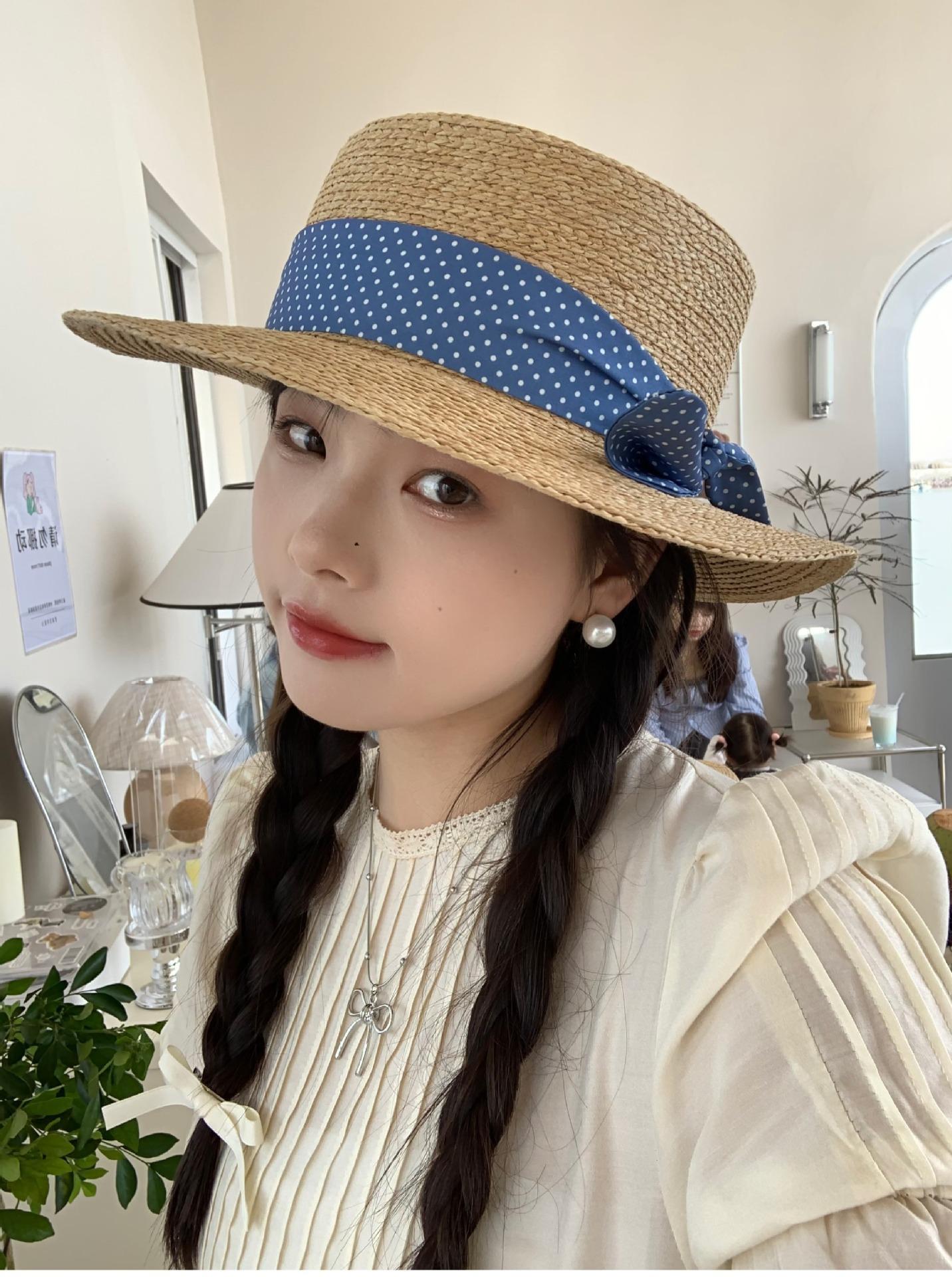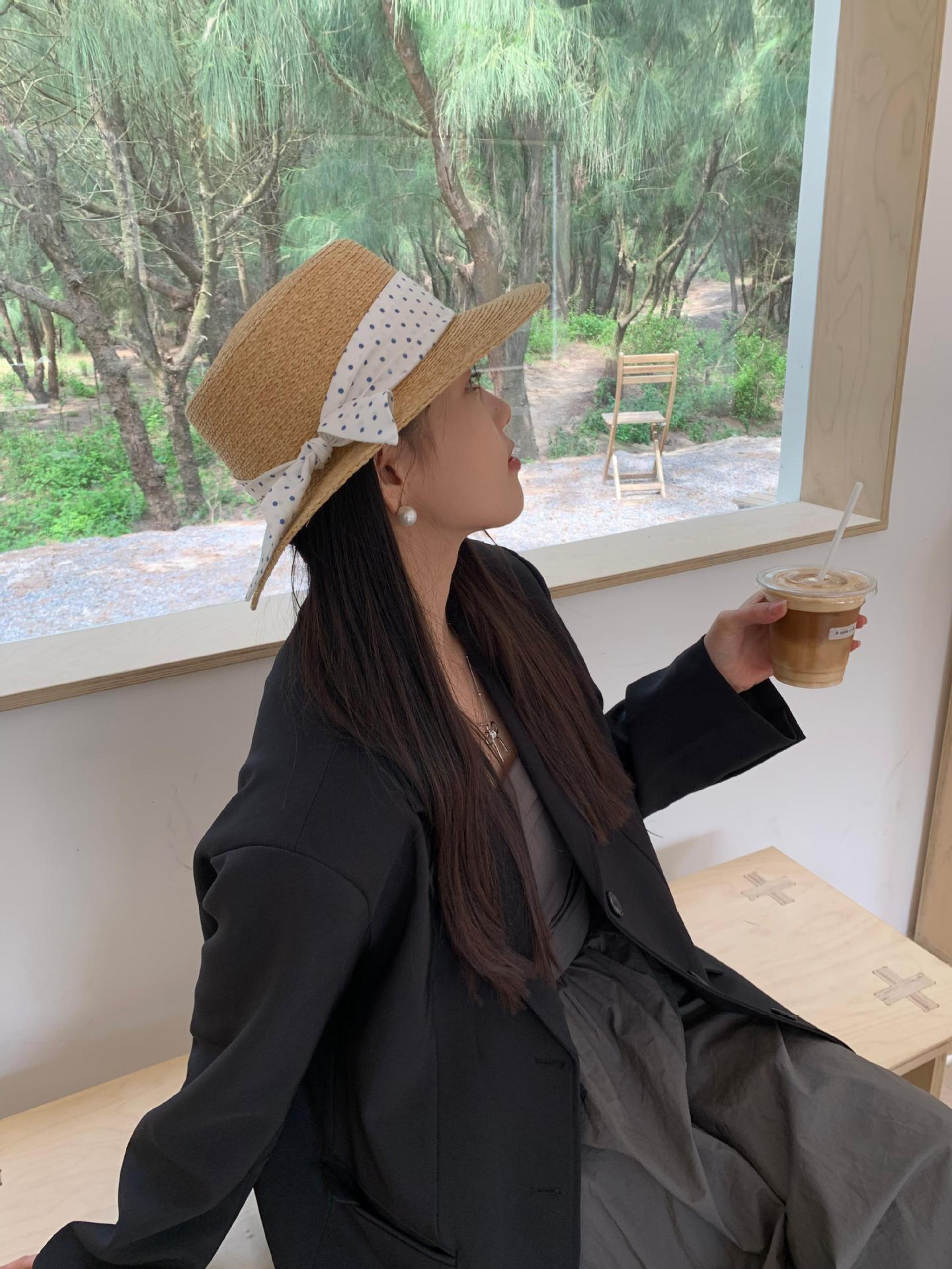 Sombrero Plano de Paja Rafafi con Lazo para Mujer Casual Vacaciones Nuevo Estilo Francés Sombrero de Paja con Lazo Sombrero Parasol
