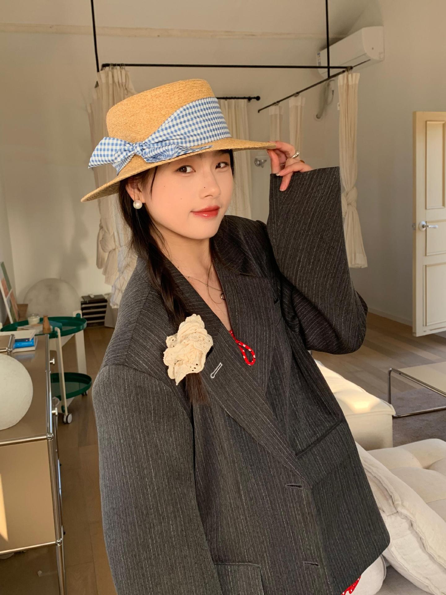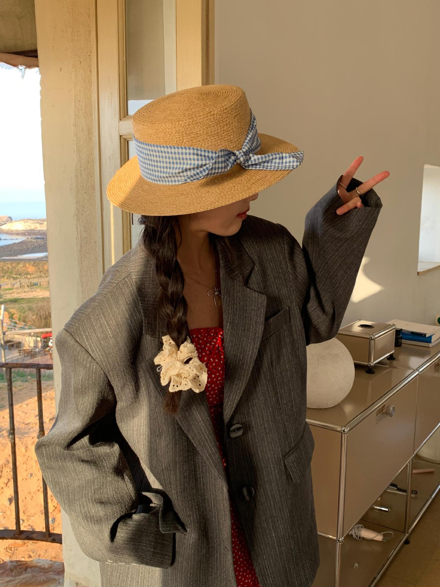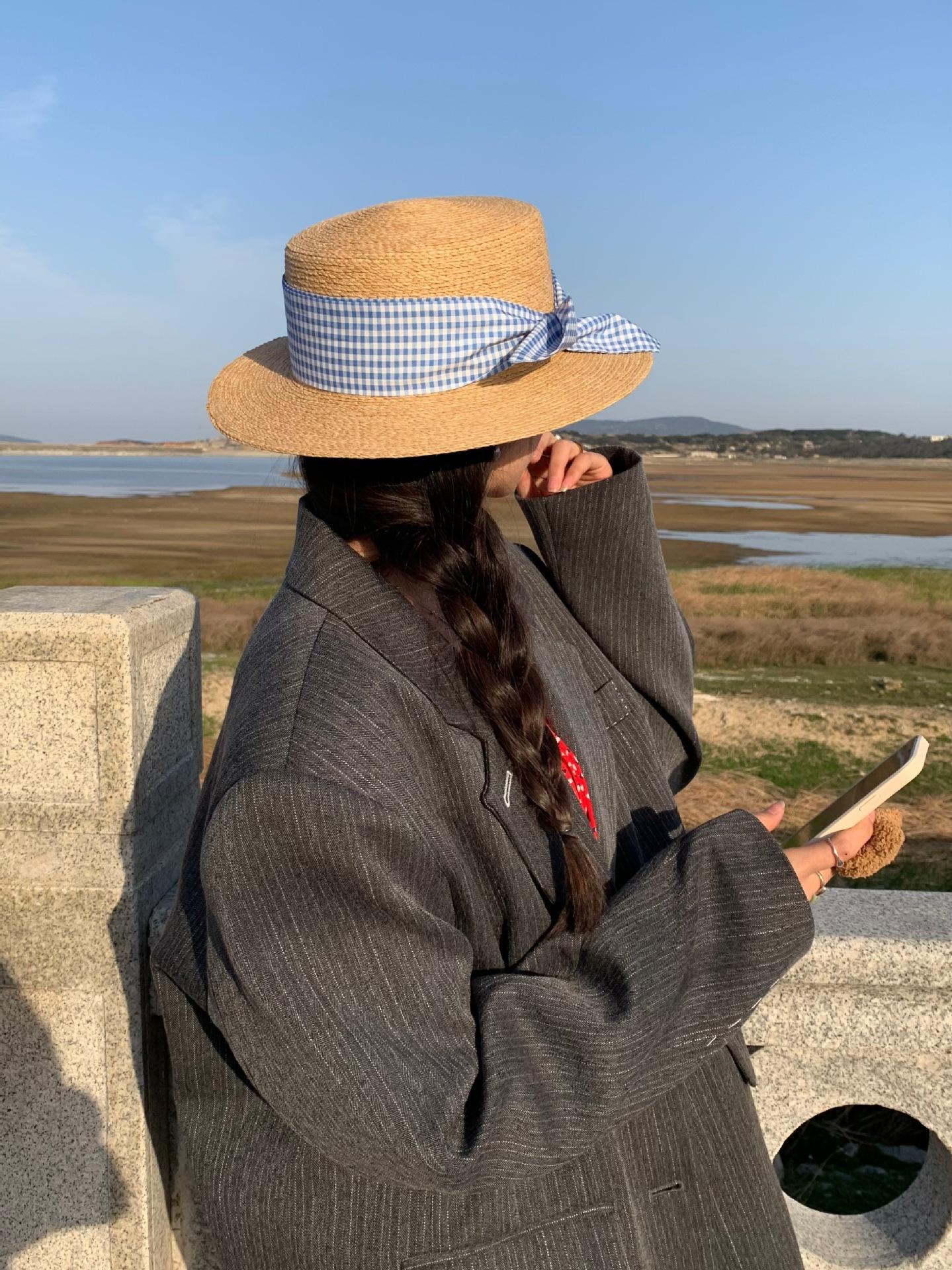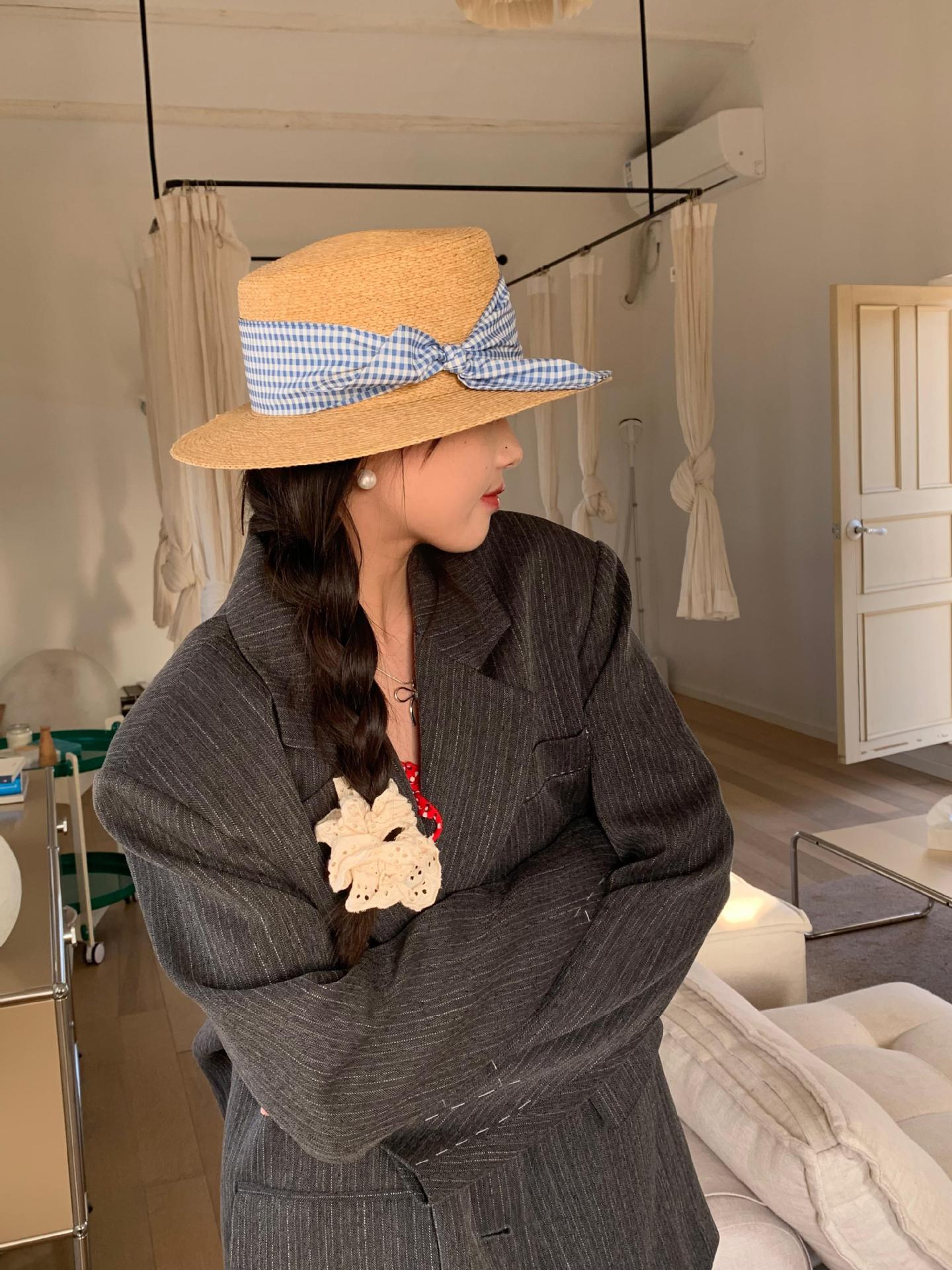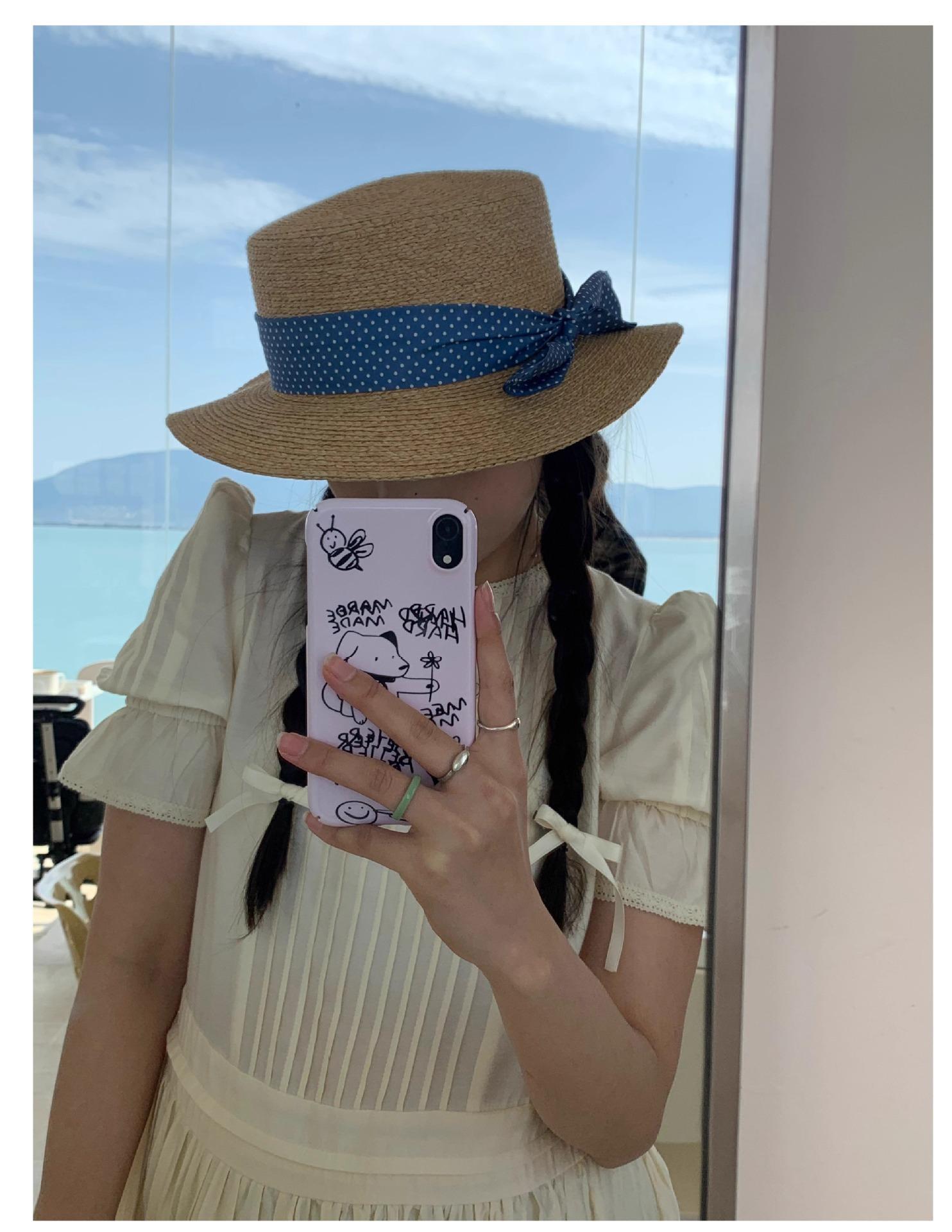 Sombrero Plano de Paja Rafafi con Lazo para Mujer Casual Vacaciones Nuevo Estilo Francés Sombrero de Paja con Lazo Sombrero Parasol