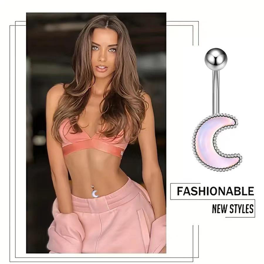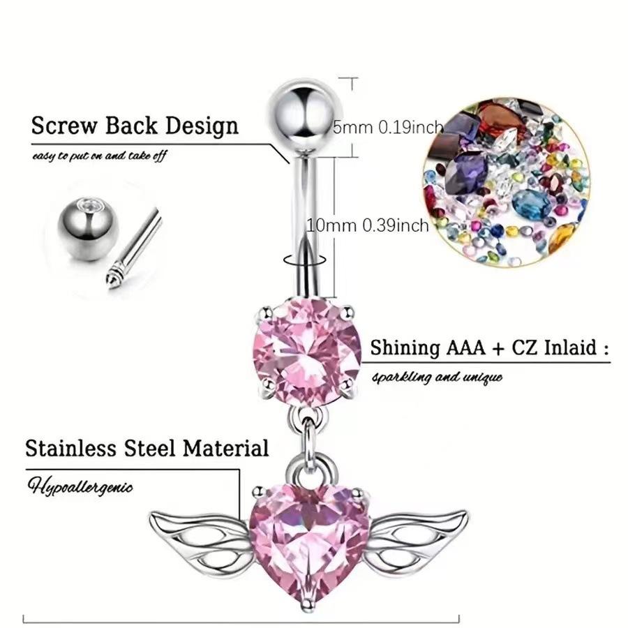 Anillo de ombligo de la serie rosa fuerte con forma de corazón de circonita, lazo, flor, joyería perforada, comercio electrónico transfronterizo entre Europa y Estados Unidos