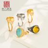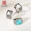 Soporte de anillo vacío de plata s925 para hombres y mujeres, con incrustaciones manuales de cera de abejas turquesa, soporte de anillo simple retro para hombres y mujeres.