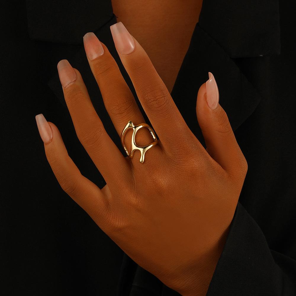 Anillo hueco geométrico irregular ajustable de aleación simple personalizado versátil nuevo de moda francesa