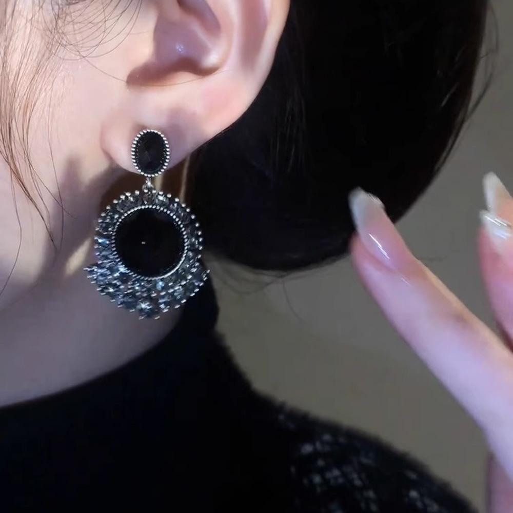 Pendientes de cristal negro retro, diseño de nicho de alta gama, estilo cortesano exagerado, pendientes nuevos de moda exquisitos.