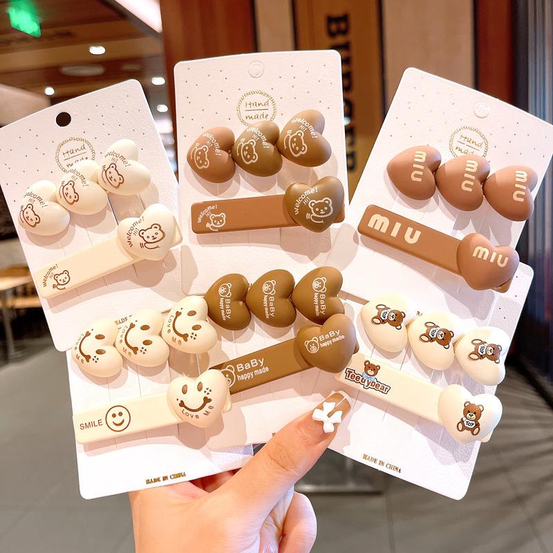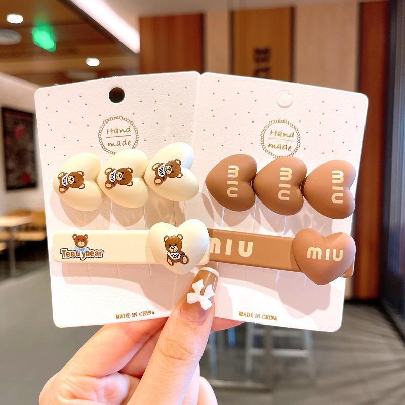 Lindo oso de té con leche, linda horquilla para el cabello, estilo coreano, flequillo de celebridad de Internet, accesorios para el cabello, clip lateral, horquilla japonesa y coreana para la parte posterior de la cabeza.
