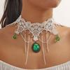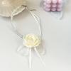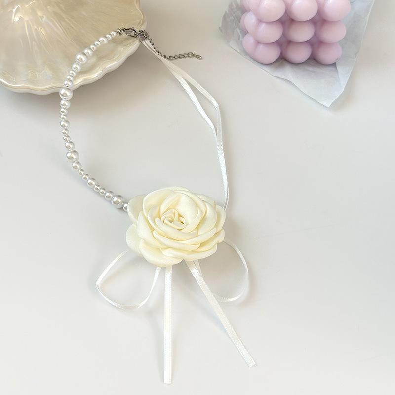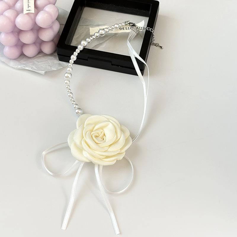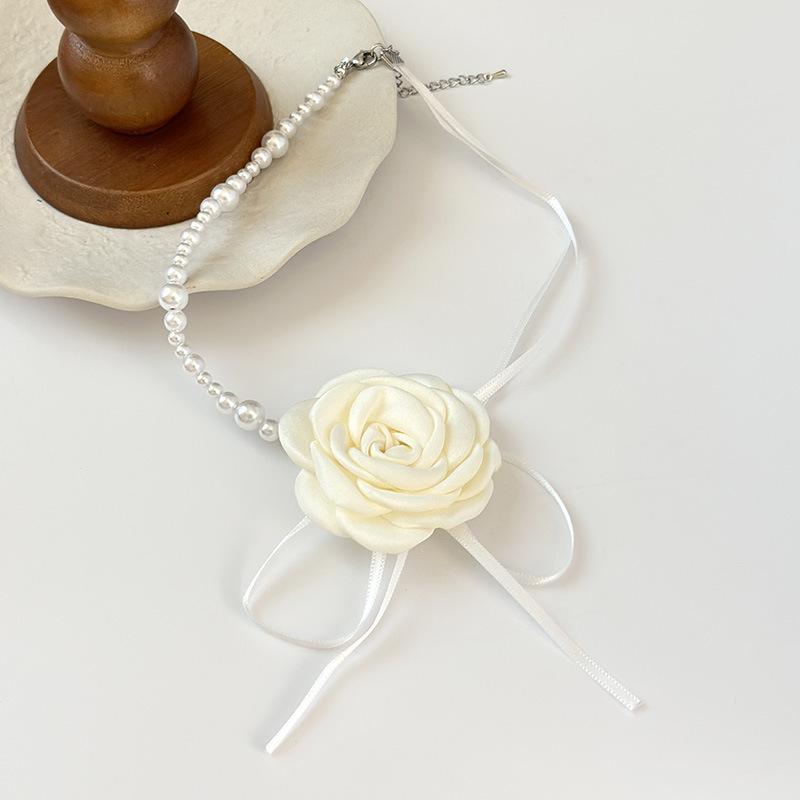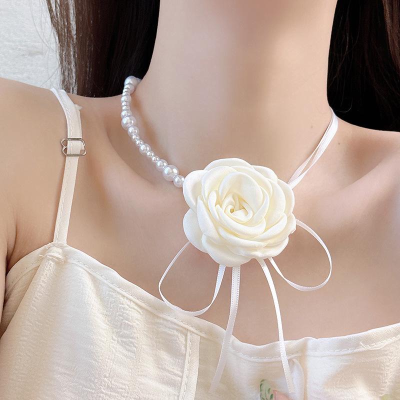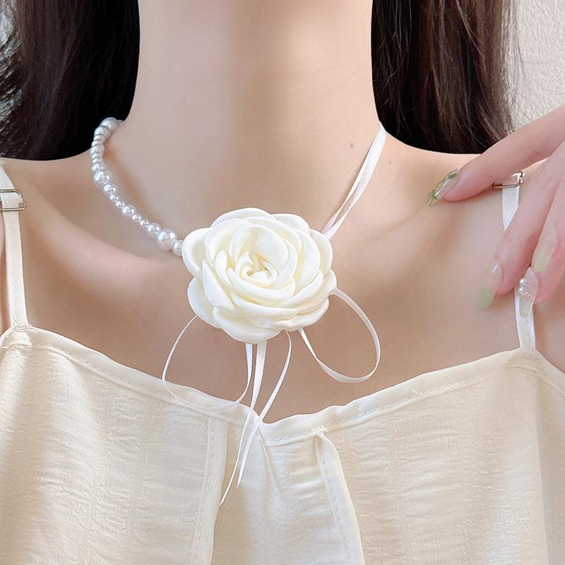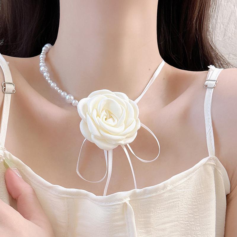 Collar de encaje de rosas vintage estilo francés Super Fairy, gargantilla de encaje de perlas, collar largo con cadena cruzada para clavícula para mujer