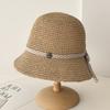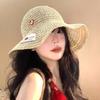 Sombrero de Paja para Mujer, Sombrero de Sol para Playa de Verano, Sombrero de Sol Tejido de Paja, Fresco y Versátil, Sombrero de Pescador Pequeño Adelgazante para la Cara