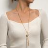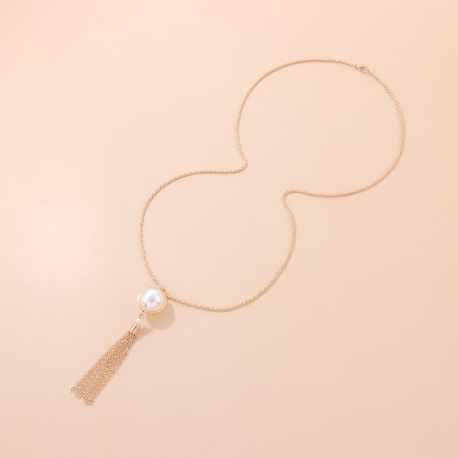Collar largo con borlas y nudo simple, joyería transfronteriza entre Europa y Estados Unidos, cadena de suéter, colgante popular de perla para mujer