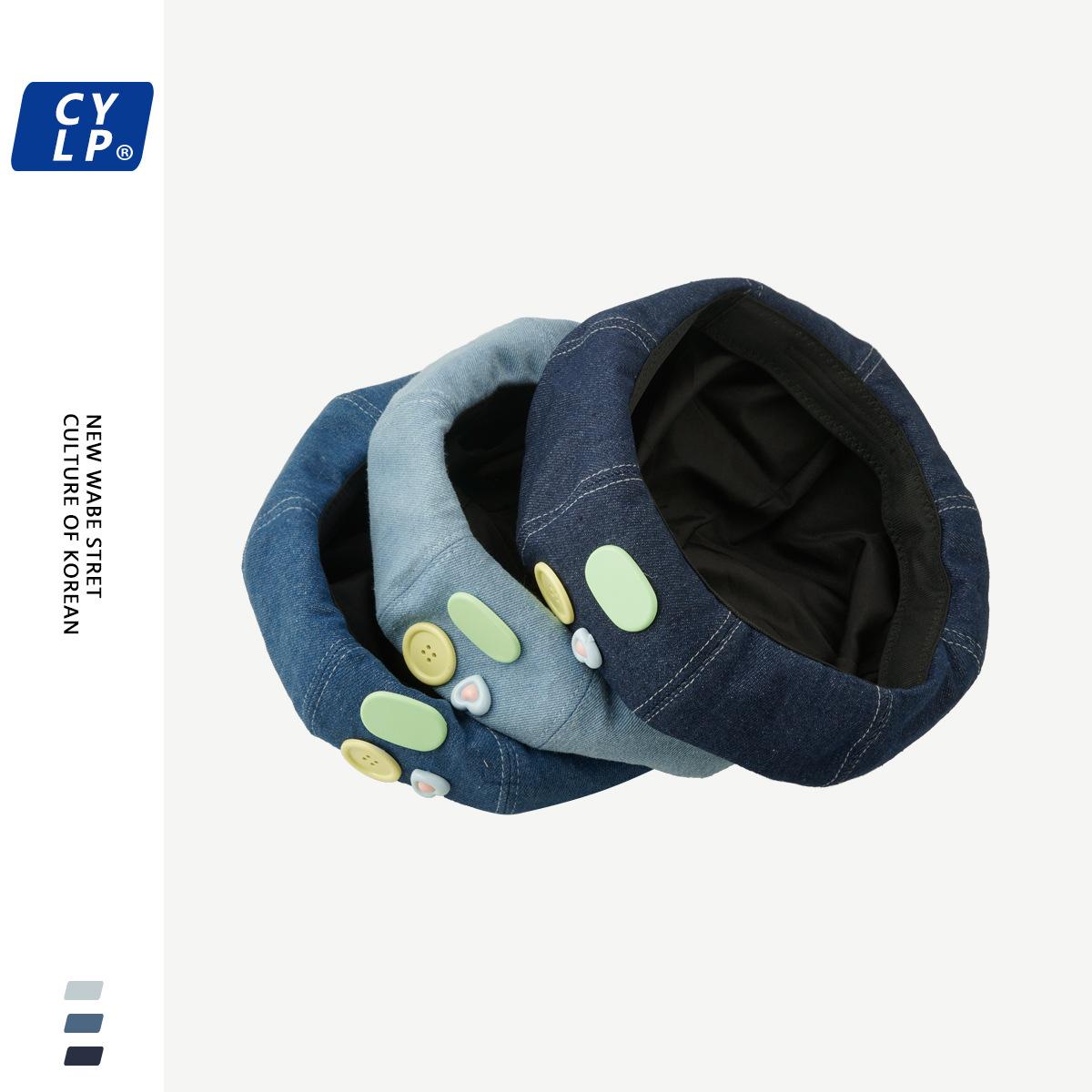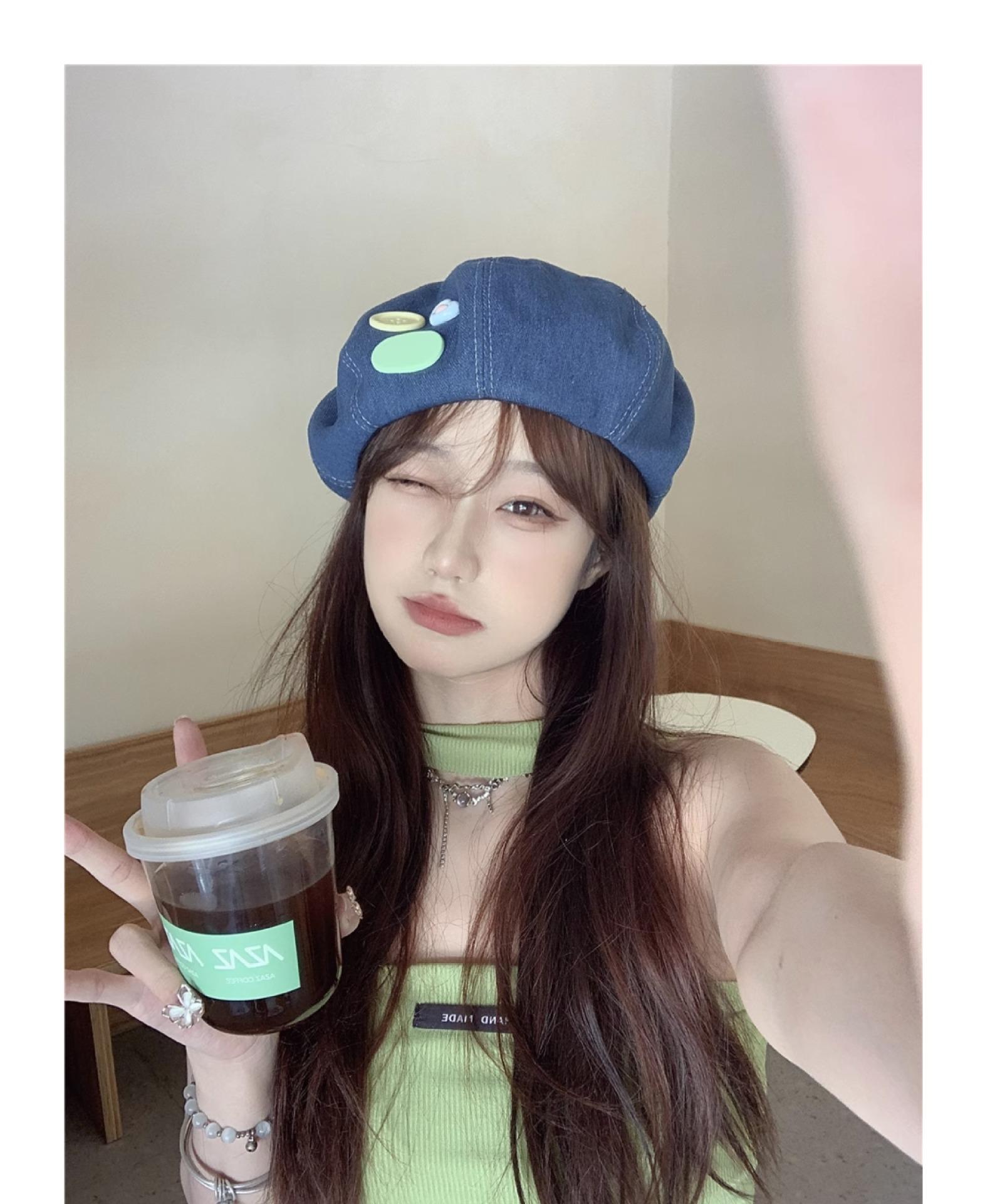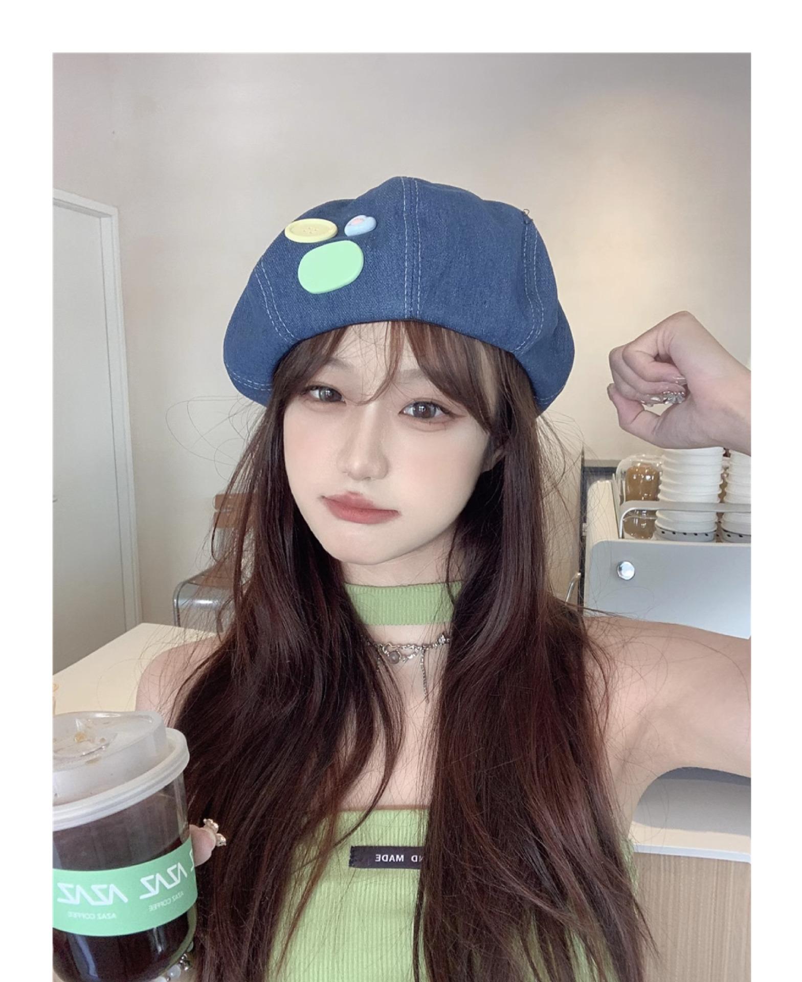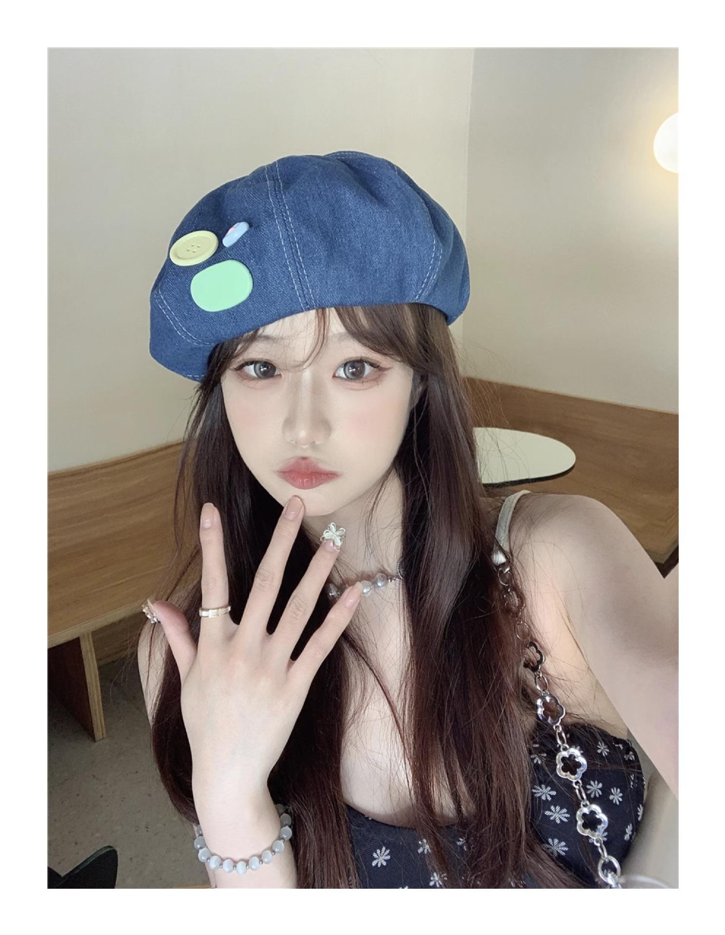 Nuevo Diseño de Botón Boina Linda para Mujer Moda Japonesa Versátil Retro Denim Sombrero Octagonal Sombrero de Pintor Moderno