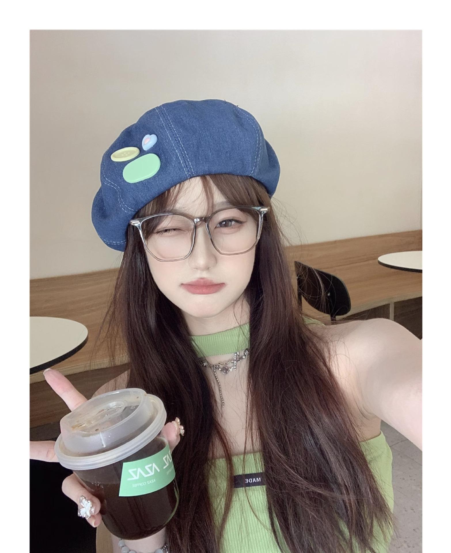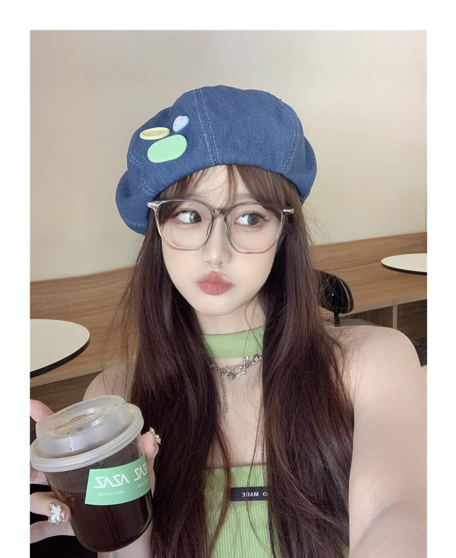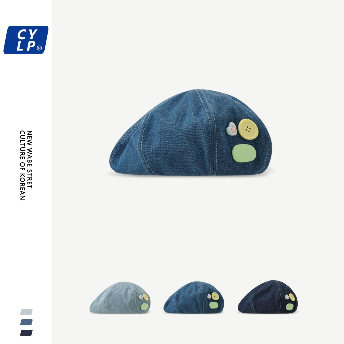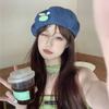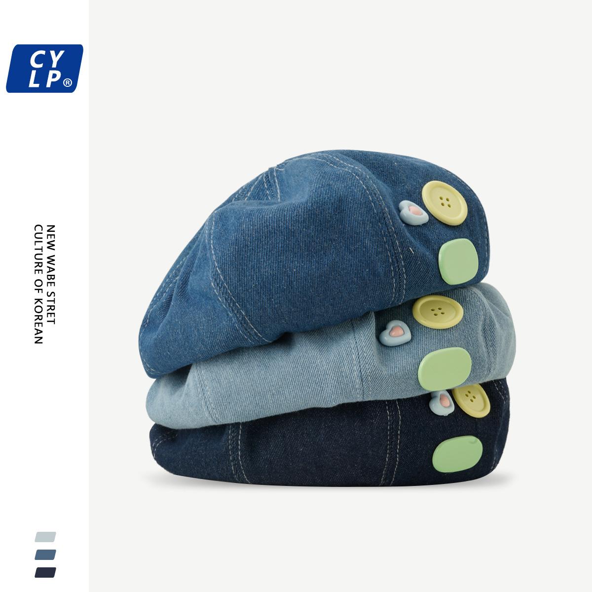 Nuevo Diseño de Botón Boina Linda para Mujer Moda Japonesa Versátil Retro Denim Sombrero Octagonal Sombrero de Pintor Moderno