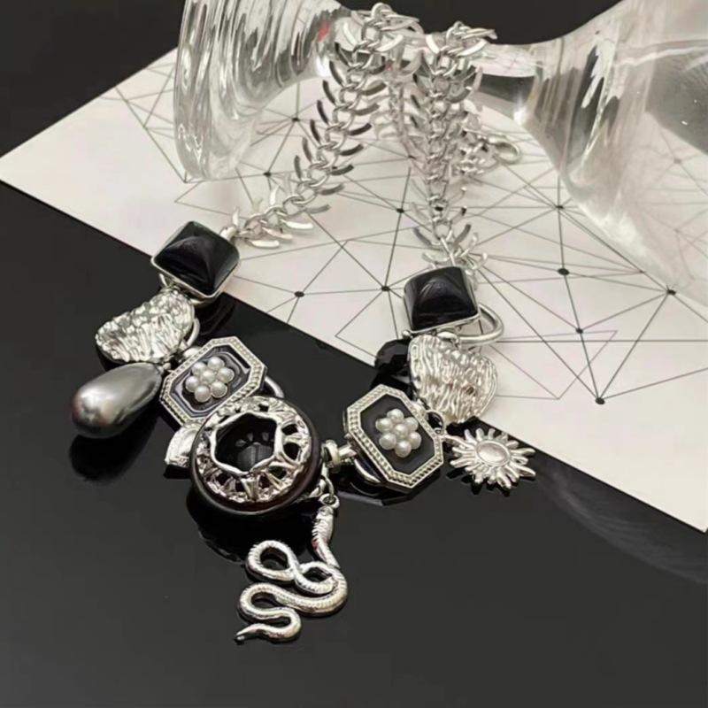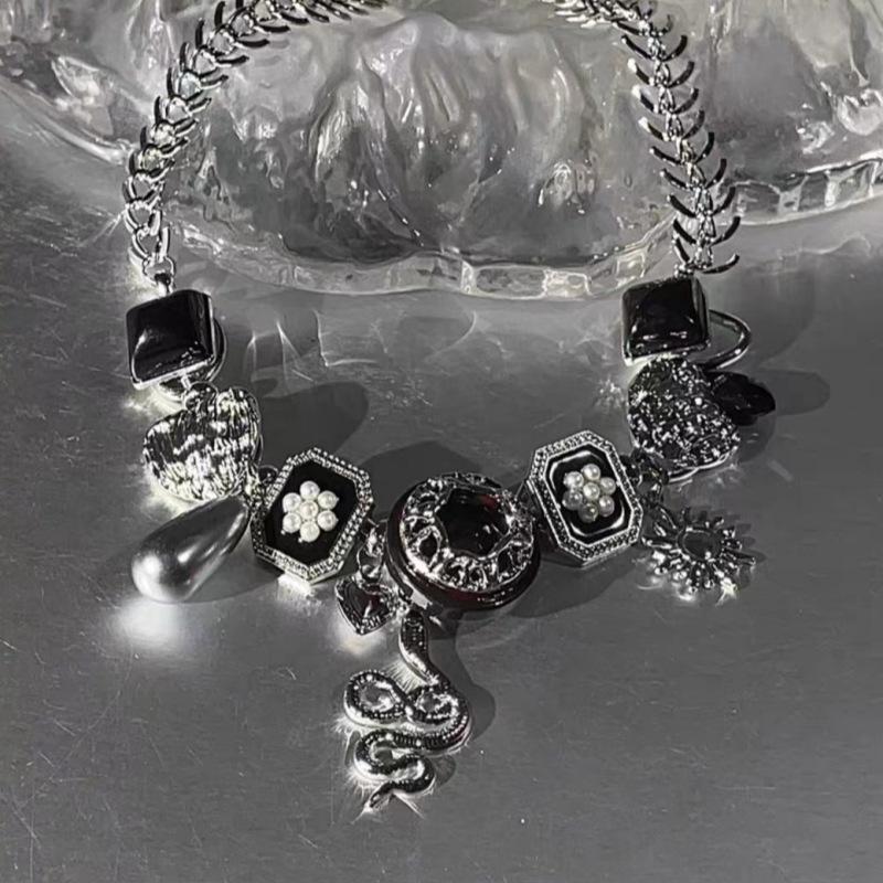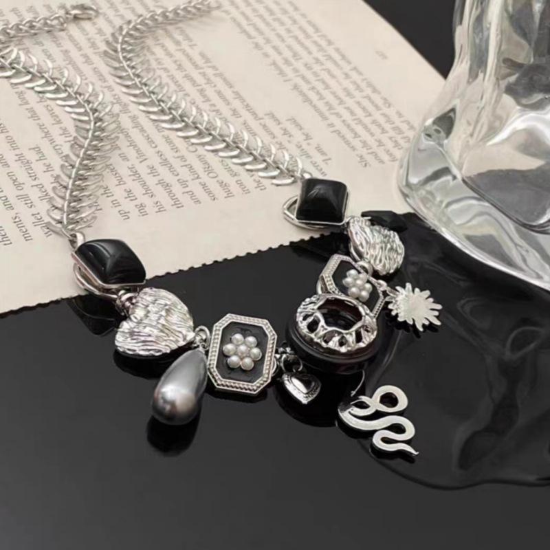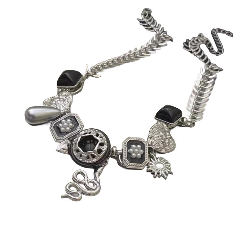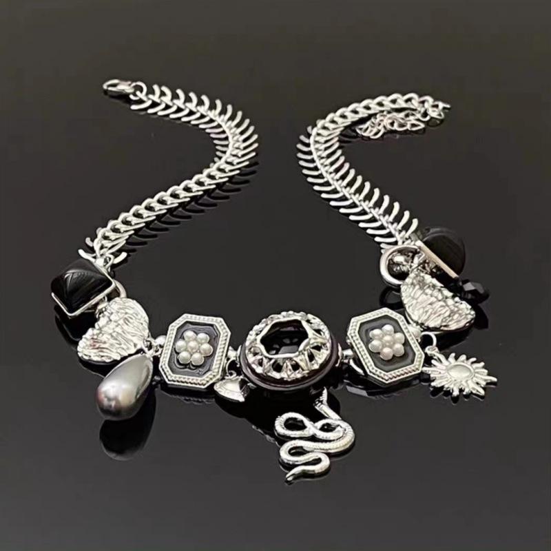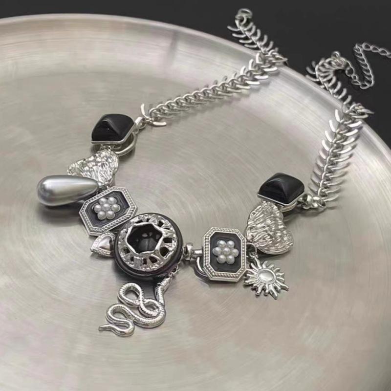 Collar de acero de titanio para chica sexy retro que combina con todo, negro, vintage, con botón, collar de moda exagerado europeo y americano, cadena para clavícula femenina