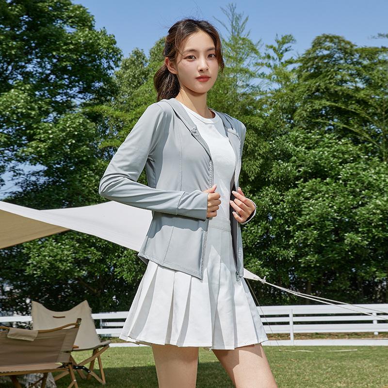 Ice Mist powder slim yoga sun protection clothing, Mist Gray slim-fit yoga sun protection clothing, Black slim...