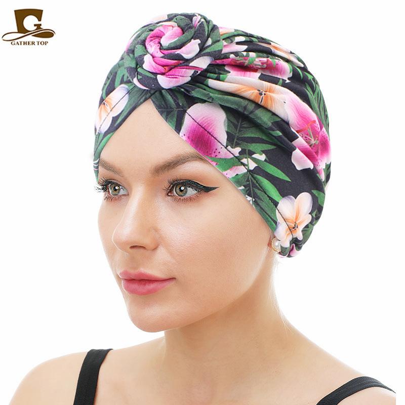 Sombrero pañuelo para la cabeza de flores popular europeo y americano sombrero de cabeza anudado musulmánJDT-342D