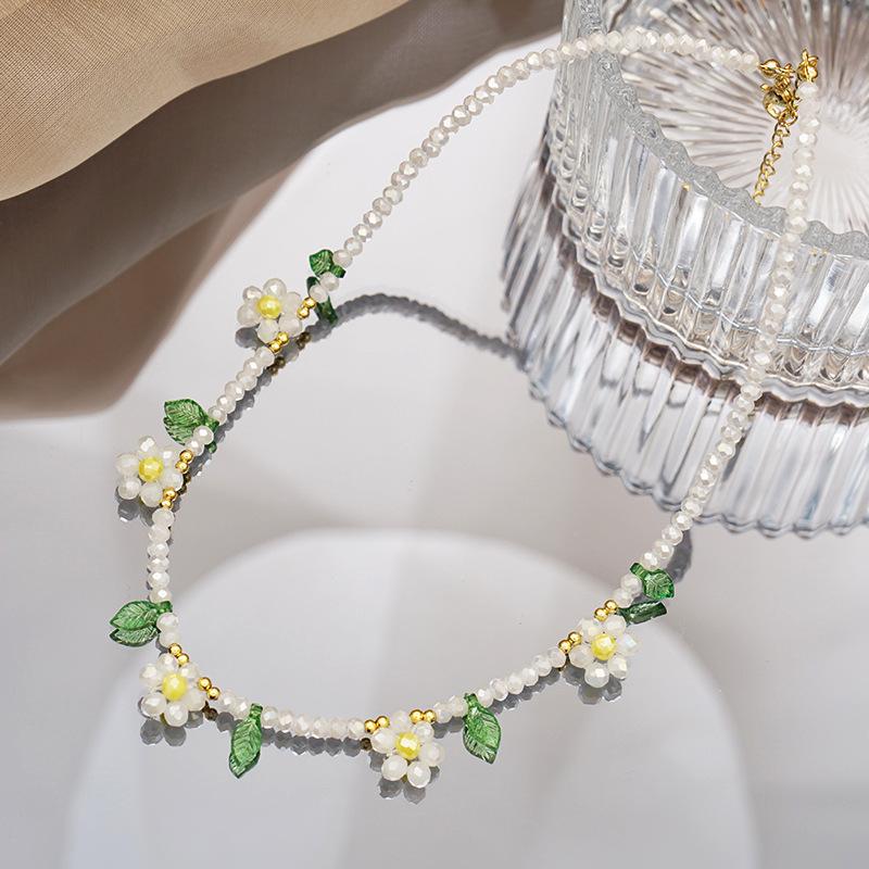 Collar de cuentas de flores de cristal fresco, accesorios para mujer, nuevo collar de cadena de clavícula de nicho colorido y dulce de verano