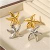 Pendientes transfronterizos nuevos y sencillos de acero inoxidable de la serie Ocean, pendientes de estrella de mar chapados en oro de 18 quilates para mujer, venta al por mayor
