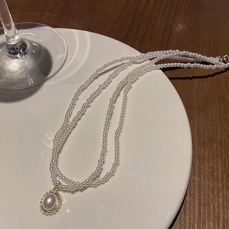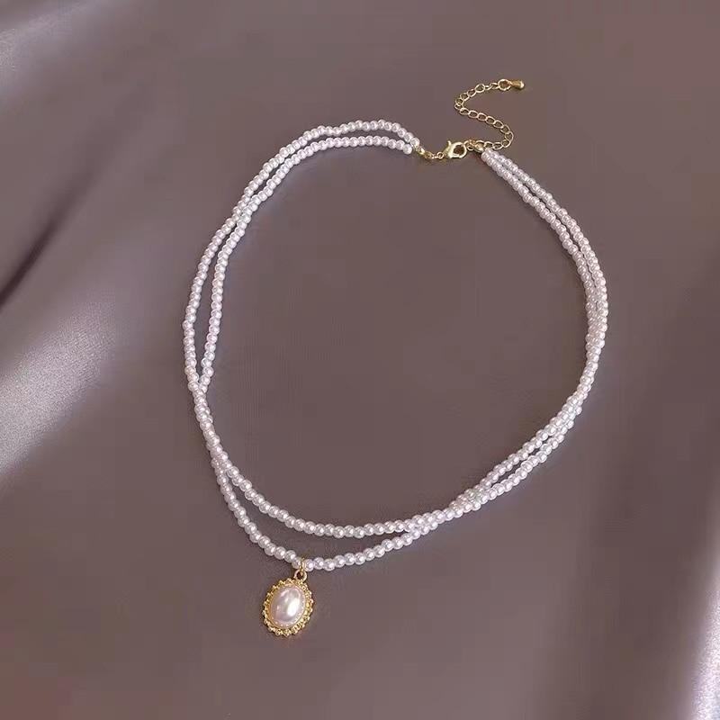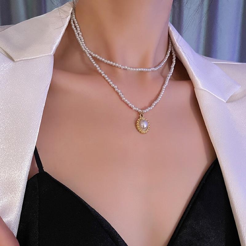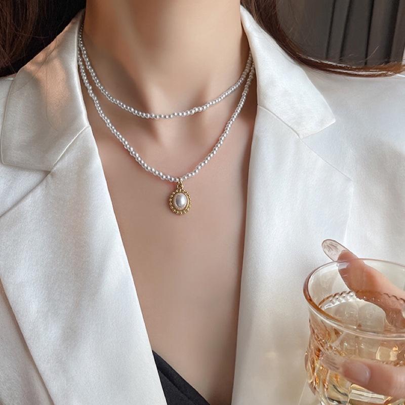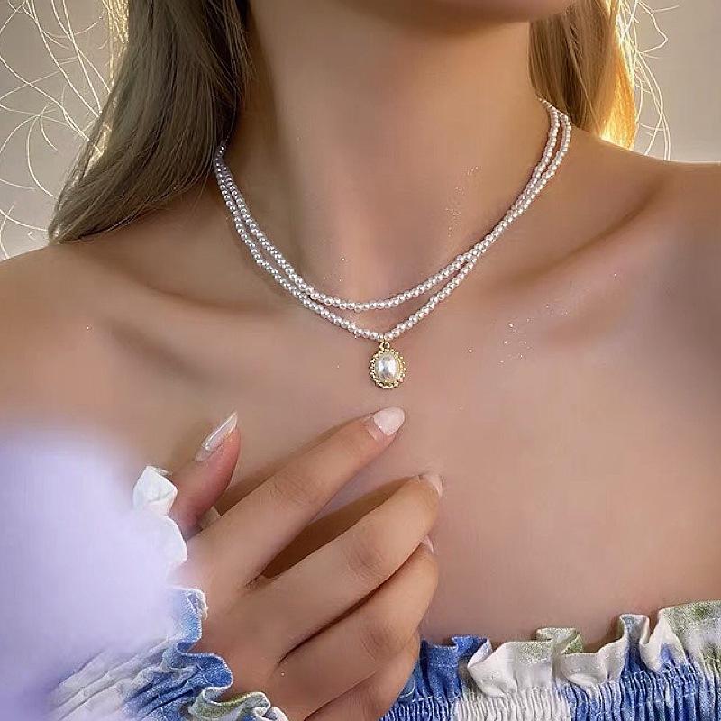 Collar de perlas plegadas de doble capa, accesorios para mujer, nuevo colgante de verano 2021, cadena de clavícula, collar, cadena