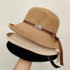 Nuevo sombrero de paja con lazo y cúpula para mujer, sombrero para el sol informal de primavera y verano, elegante sombrero para el sol de playa que combina con todo.