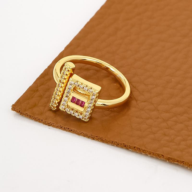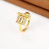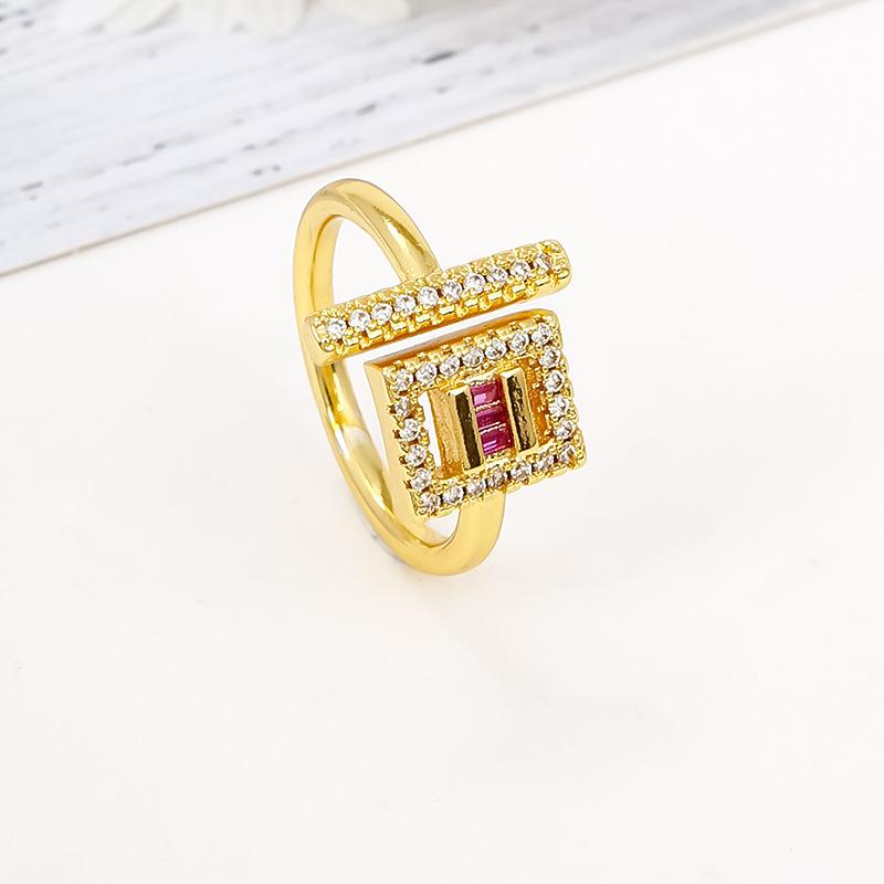 Comercio Exterior Nuevo Anillo Abierto Cuadrado Geométrico con Microincrustaciones de Color de Zirconia de Cobre, Diseño Personalizado, Anillo Combinable con Nicho de Alta Conservación de Color