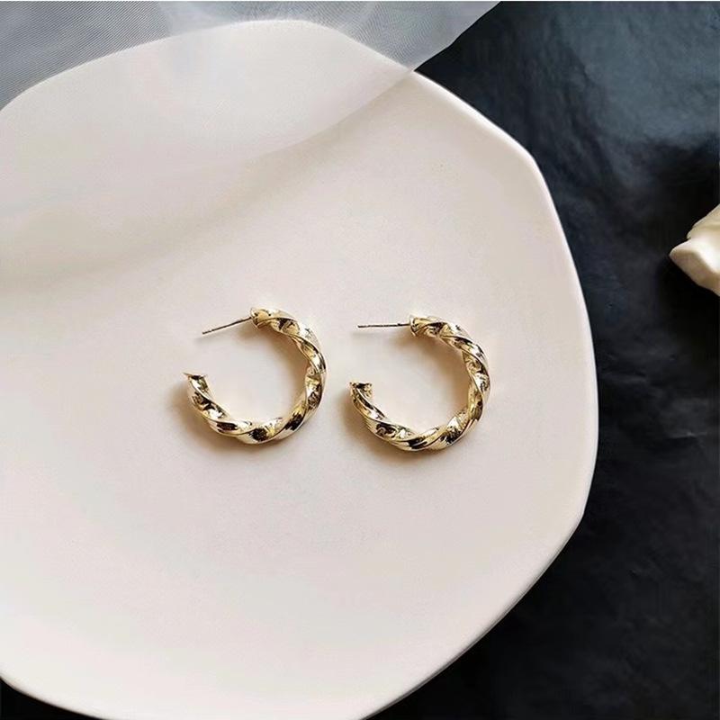 Pendientes huecos con forma de C, populares en Dongdaemun, de plata S925 con aguja, de Corea del Sur, elegantes y retorcidos, de estilo europeo y americano.