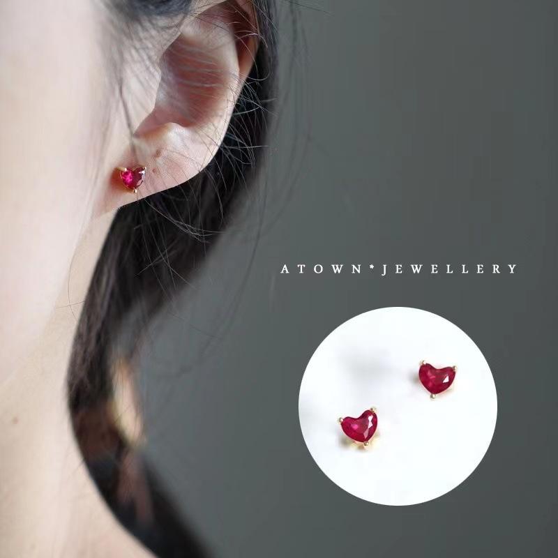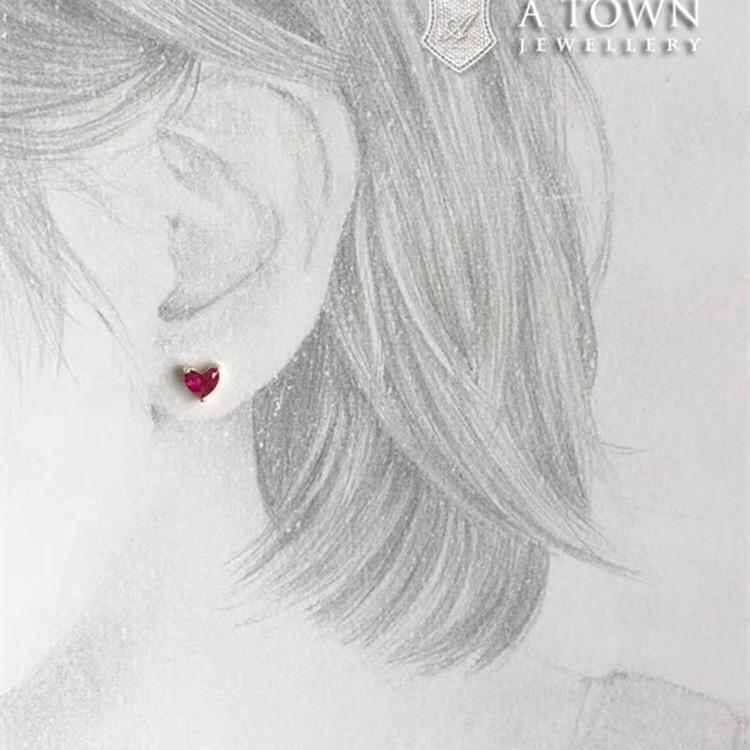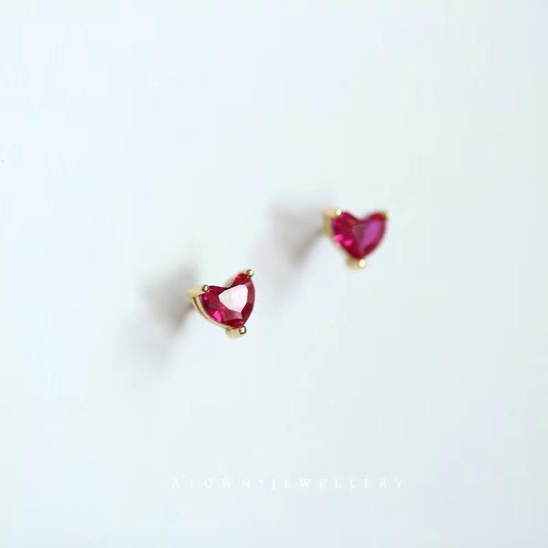Pendientes pequeños de circonita roja con forma de corazón rosa y diamante rosa, venta al por mayor