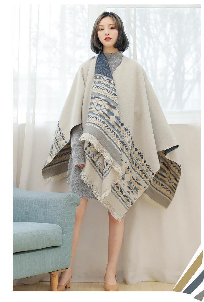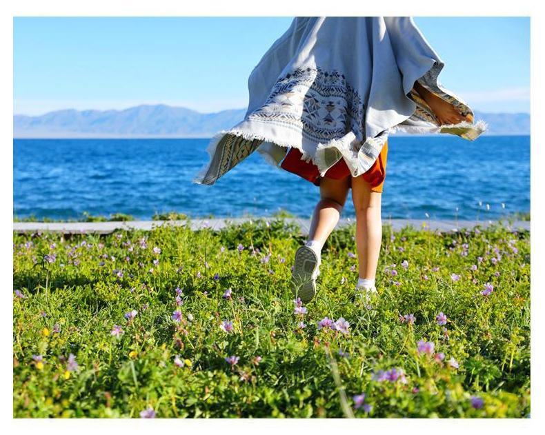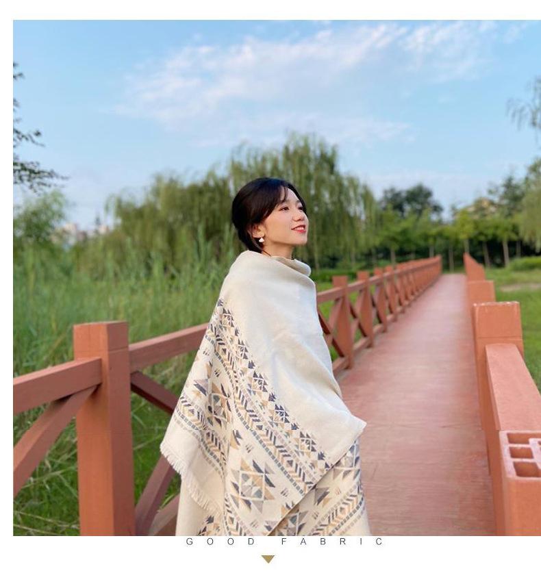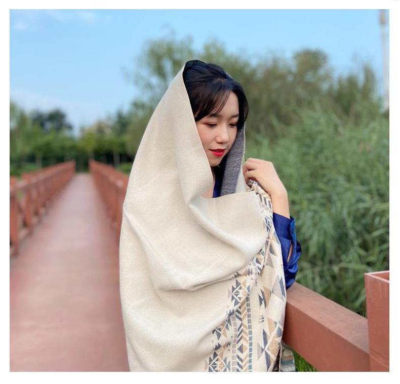 Chal grande de viaje para mujer, de cachemira, de doble cara, estilo étnico, con borlas y estampado geométrico, ideal para habitación con aire acondicionado en verano.