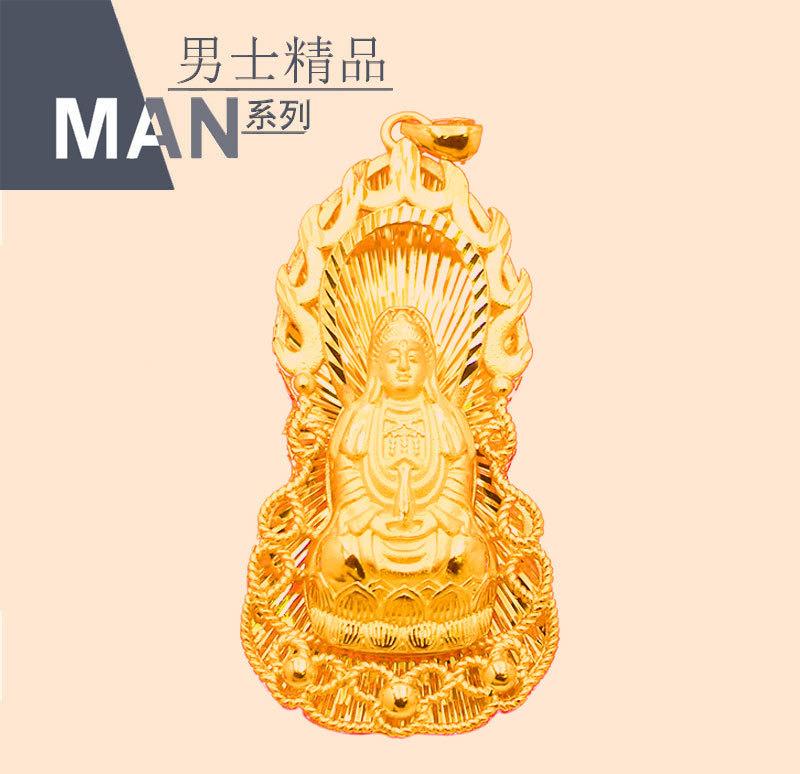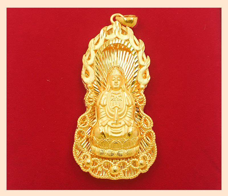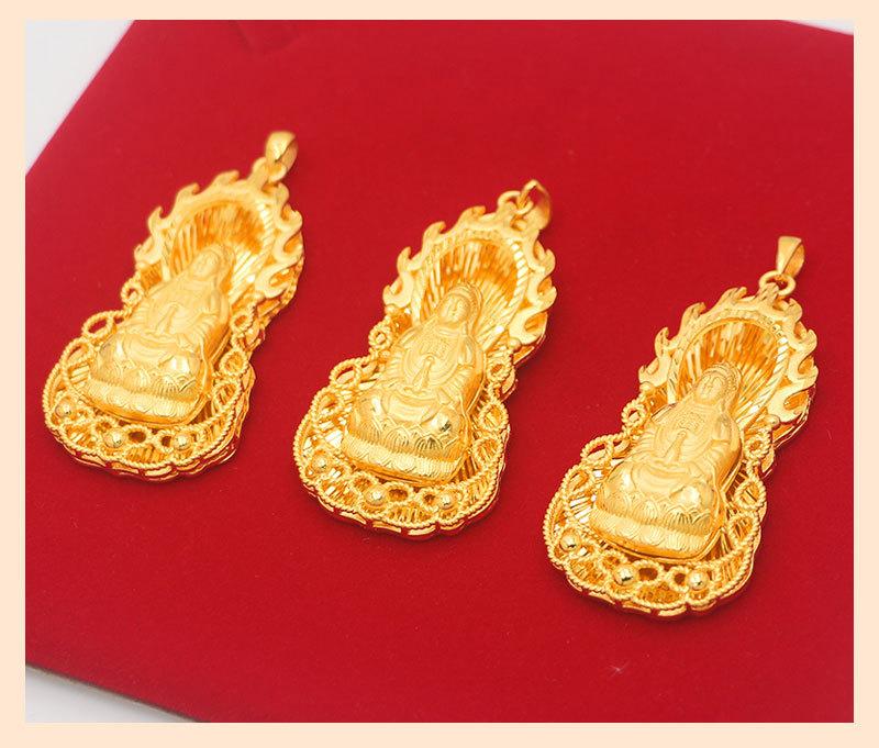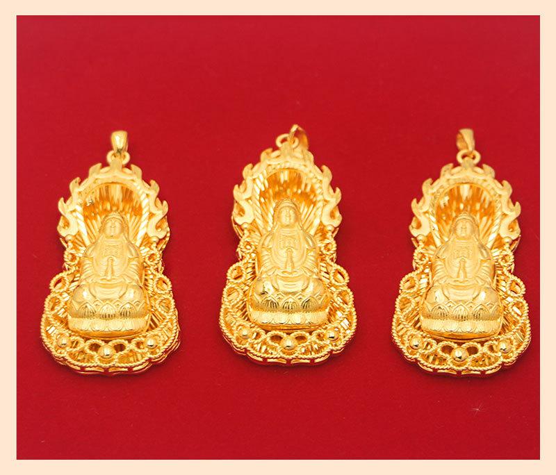 Joyería chapada en oro Guanyin collar colgante mediano Pudu seres sintientes etiqueta de oro tridimensional fábrica