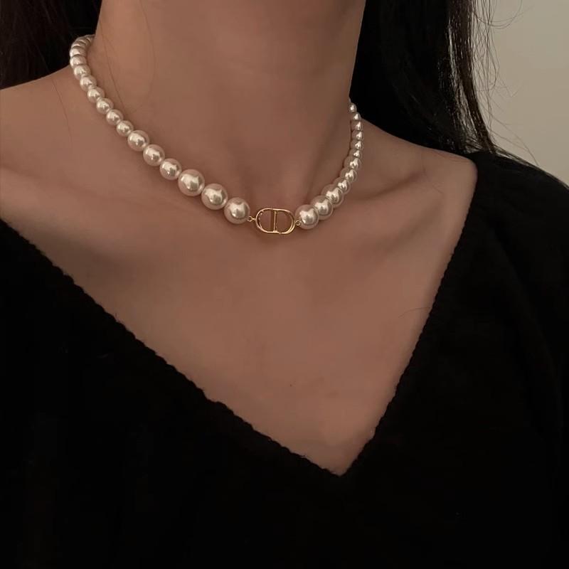 Collar retro de perlas para mujer, estilo moderno, cadena para el cuello, diseño de nicho de lujo ligero, cadena de clavícula de moda CD 2023