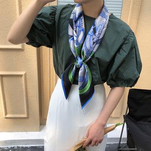 | |  | | Bufanda de seda con flores azules frescas y pequeñas, estilo nuevo de otoño e invierno de 2021, con decoración de bufanda larga y cinta para mujer | | | |