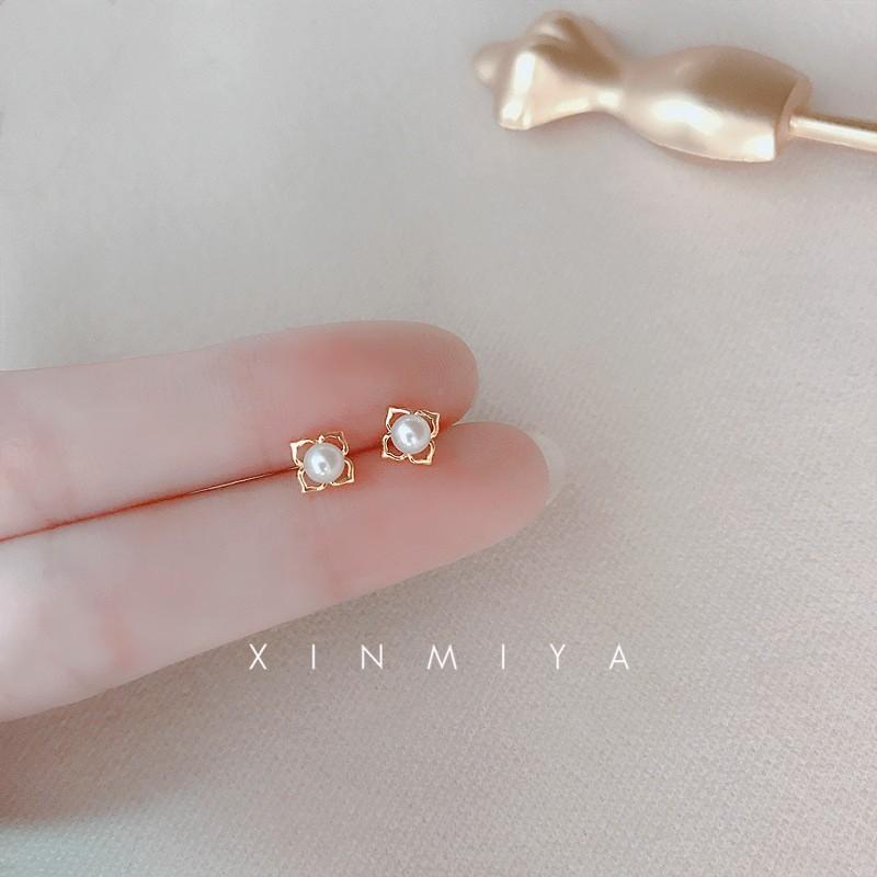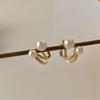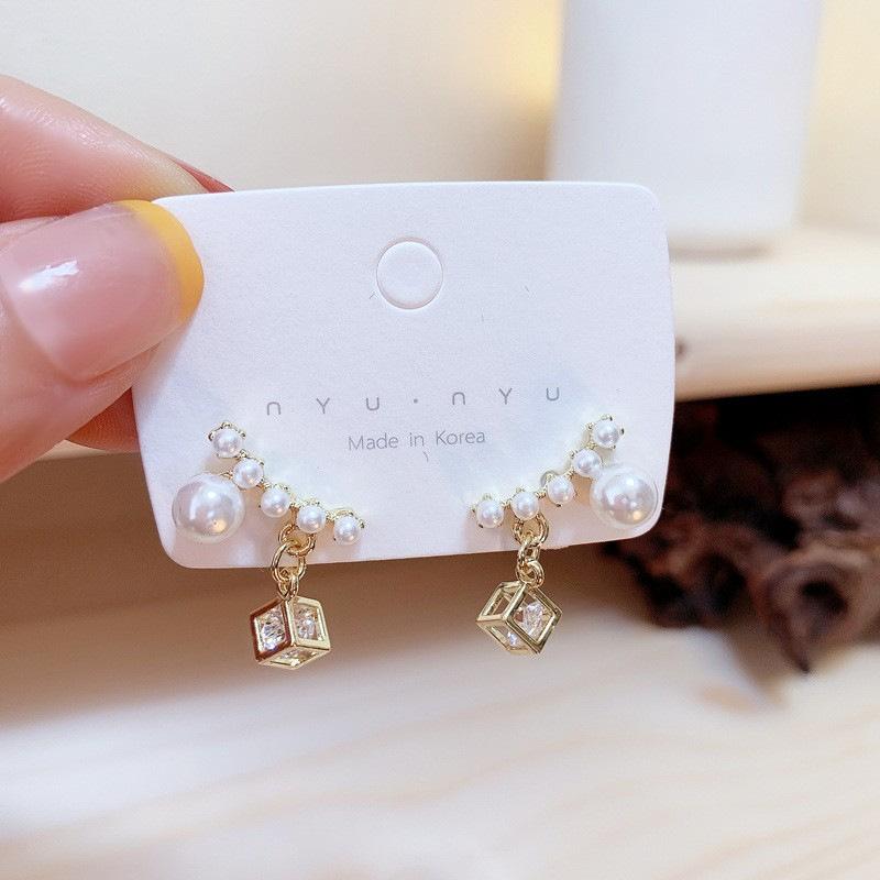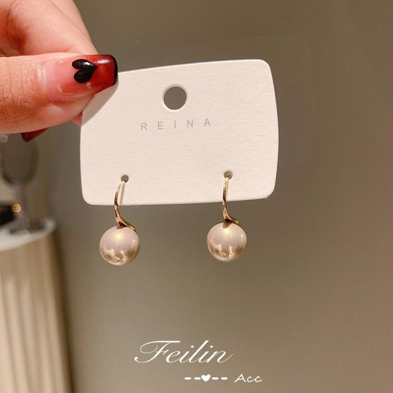 Pendientes de perlas con diseño de nicho de aguja de plata s925 de Dongdaemun, de Corea del Sur, a la moda, sencillos, retro, combinables, ligeros y de lujo.