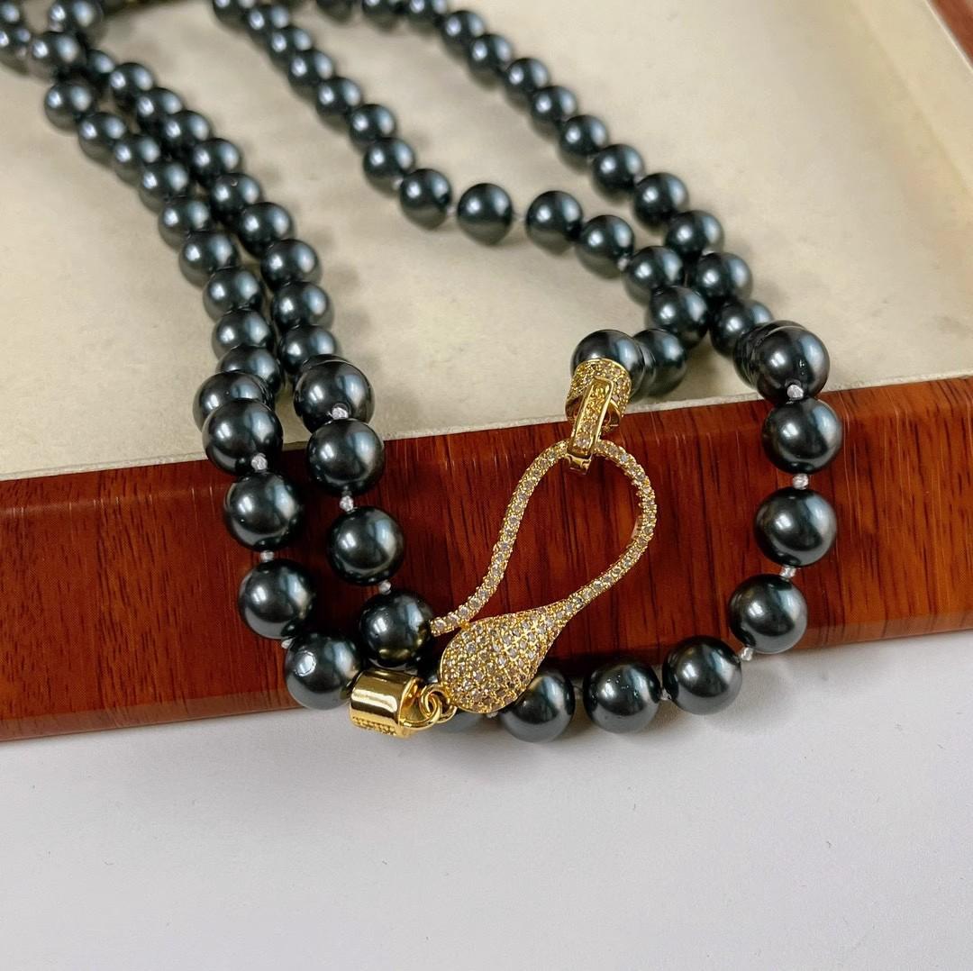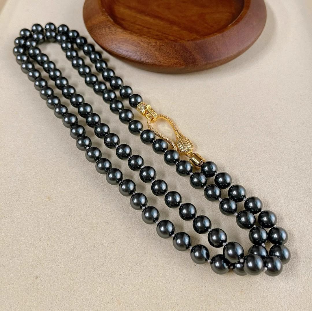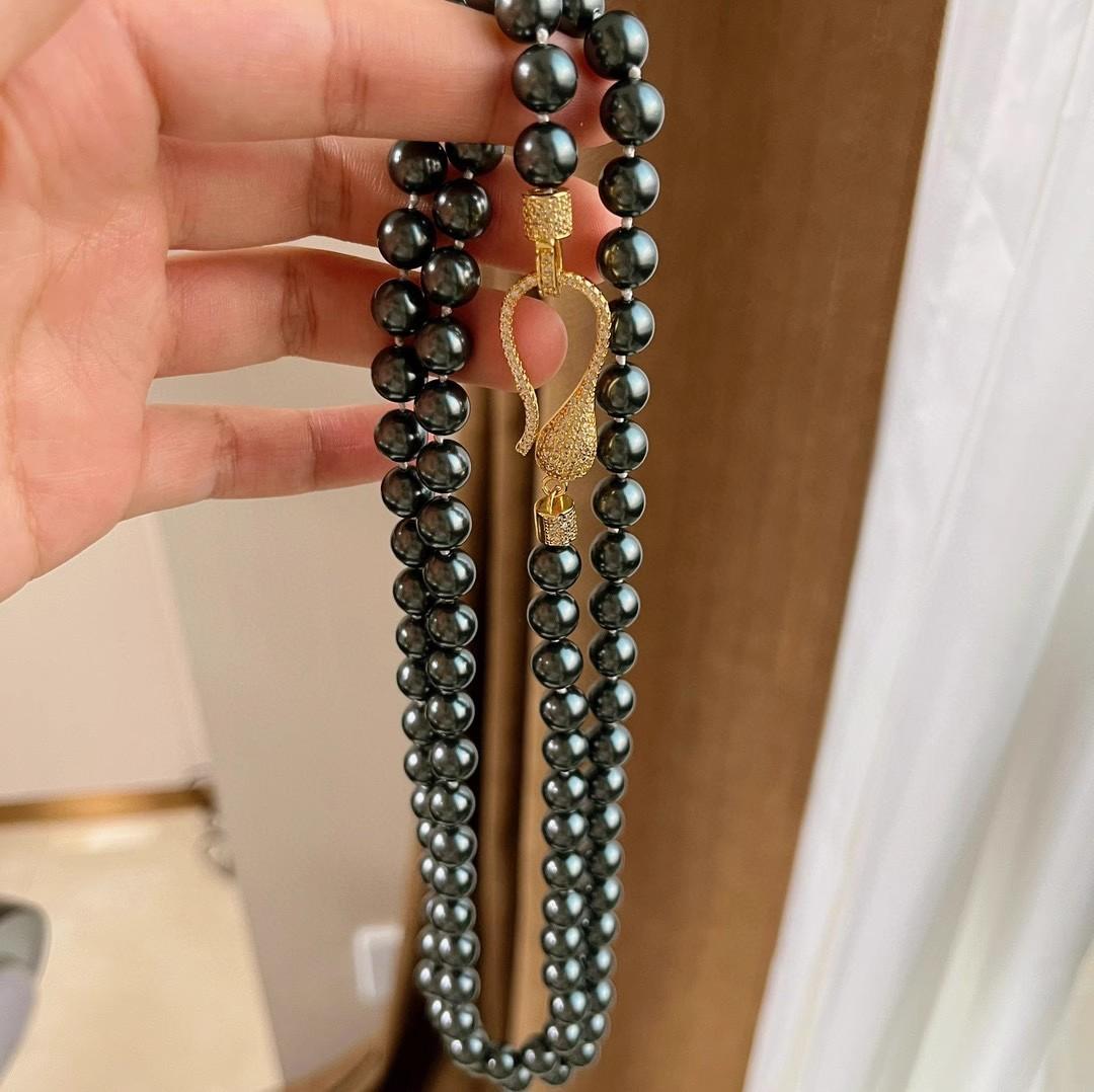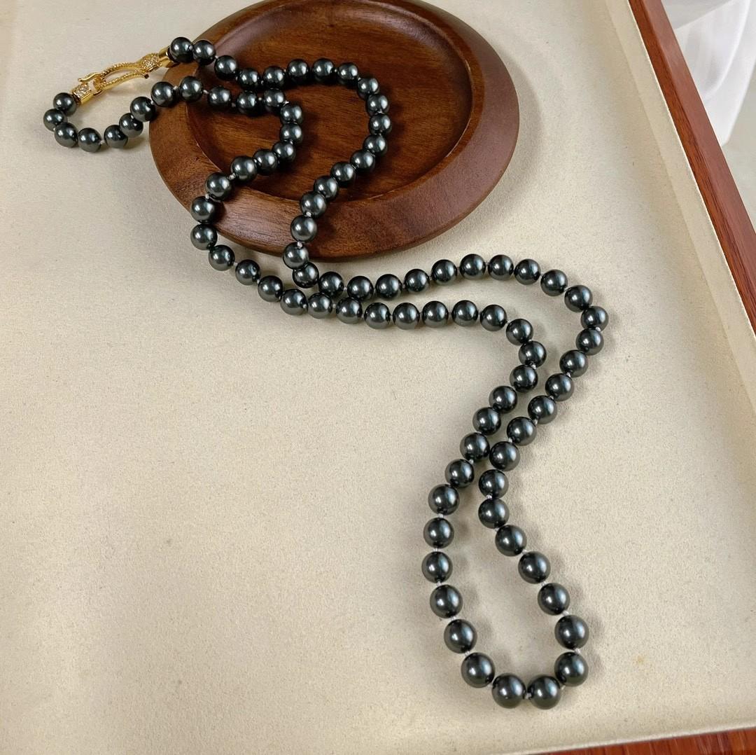 Collar de perlas negras Tahidi de doble capa 2023, nueva cadena de suéter para mujer, simple y combinable