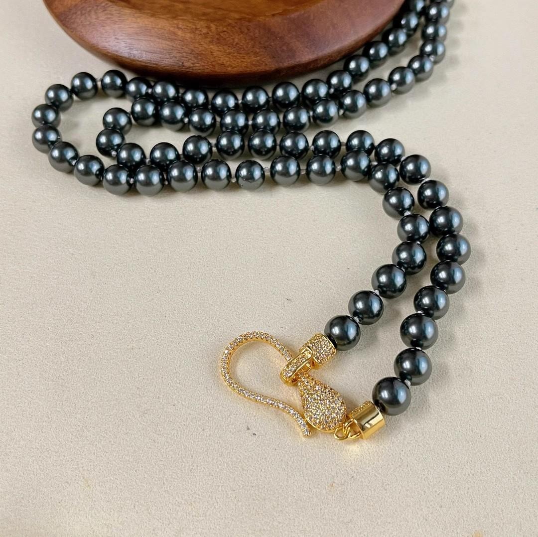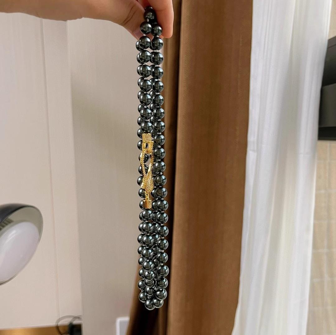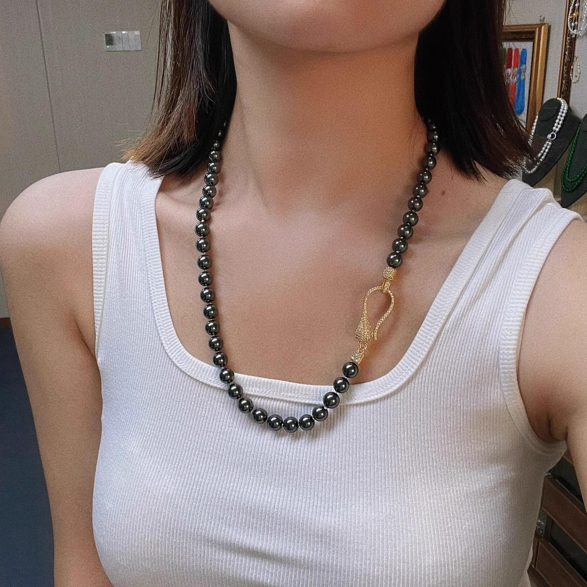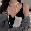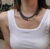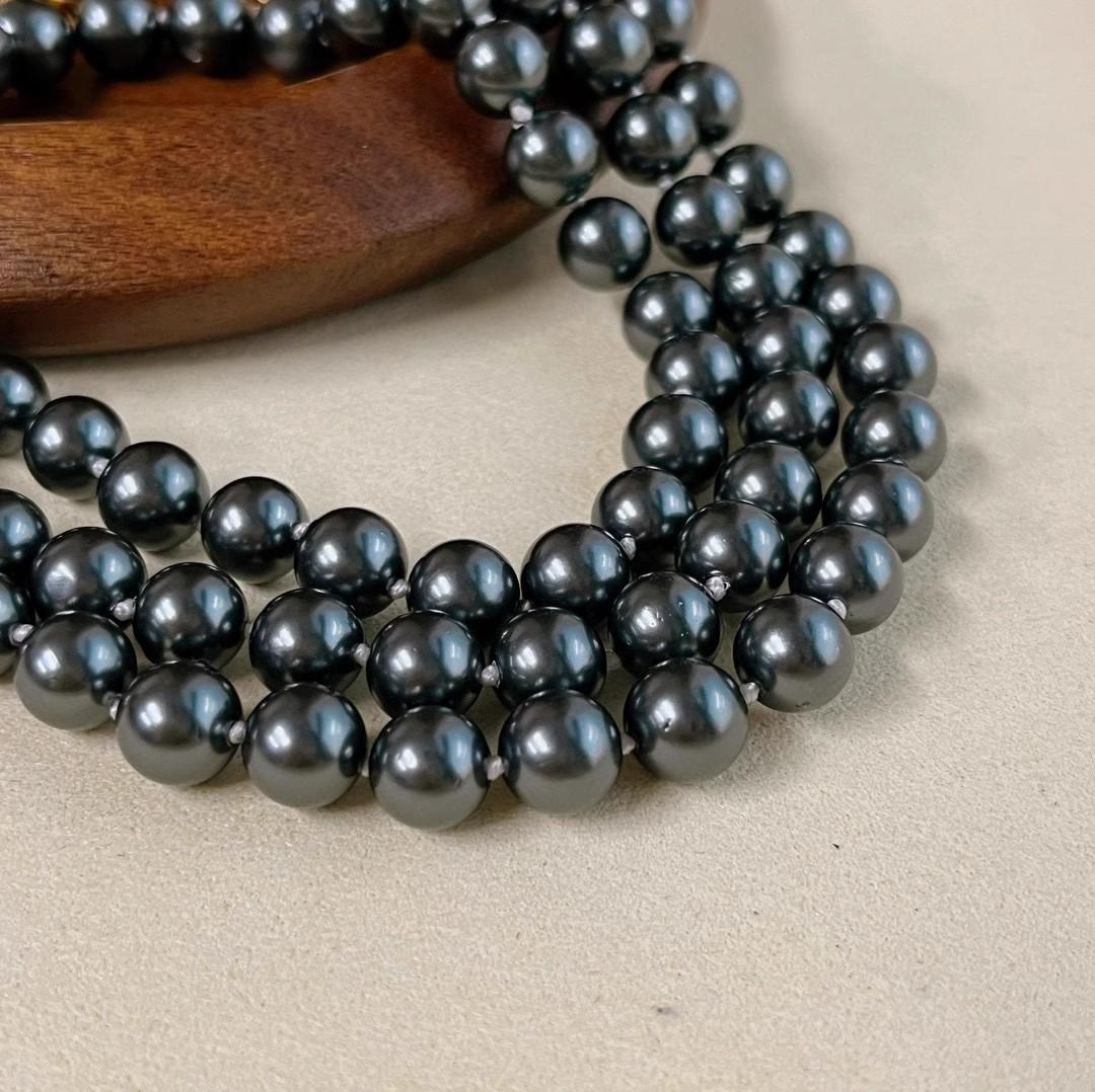 Collar de perlas negras Tahidi de doble capa 2023, nueva cadena de suéter para mujer, simple y combinable
