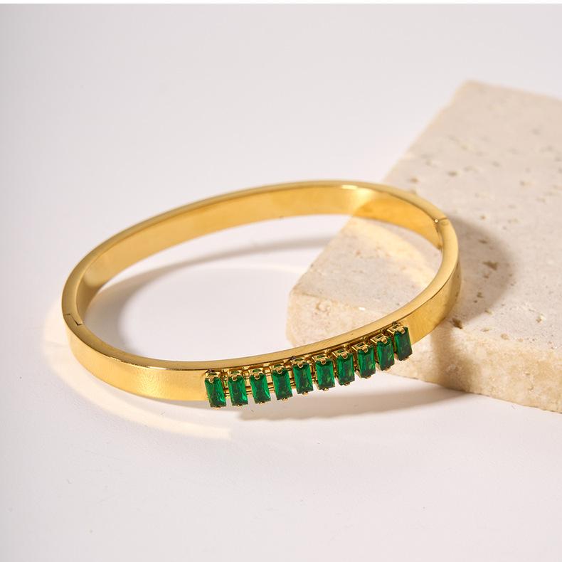 Pulsera Europea y Americana de Moda Personalizada de Acero de Titanio Chapado en Oro con Zirconia Retro Versátil Transfronteriza de Acero Inoxidable con Diamantes Estilo Ins