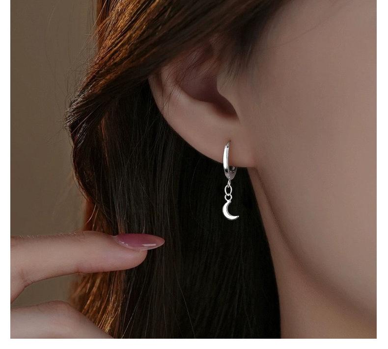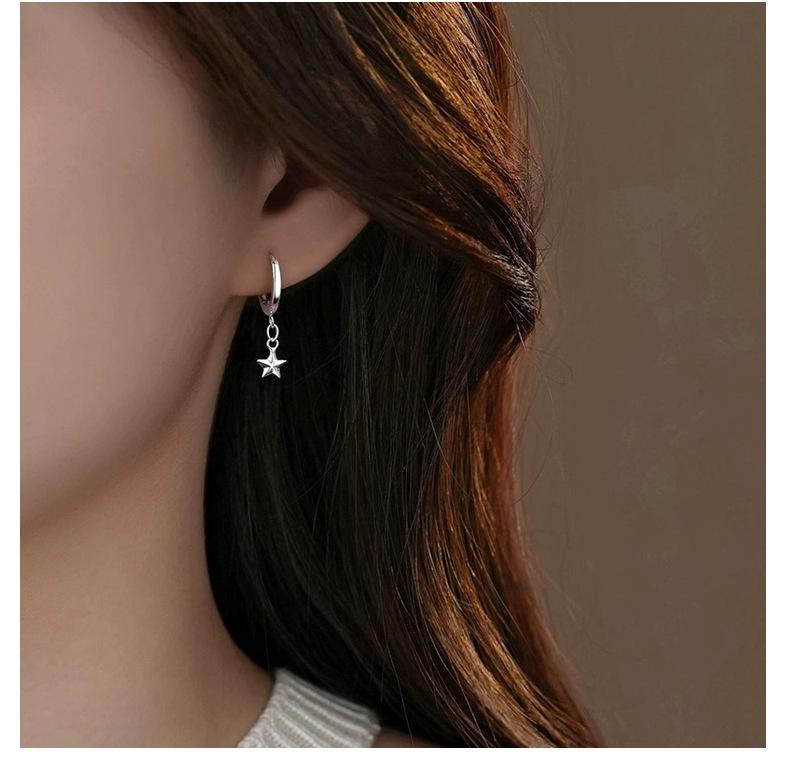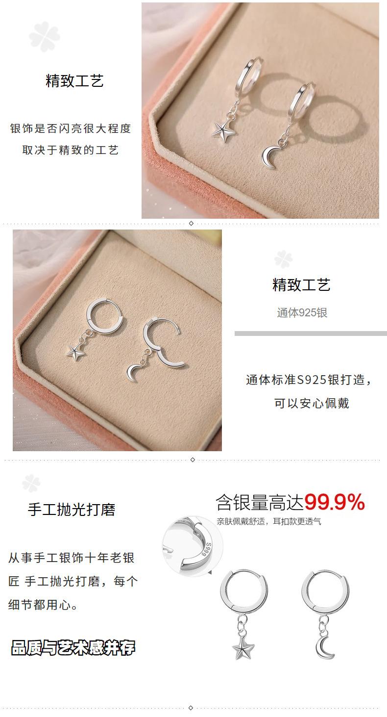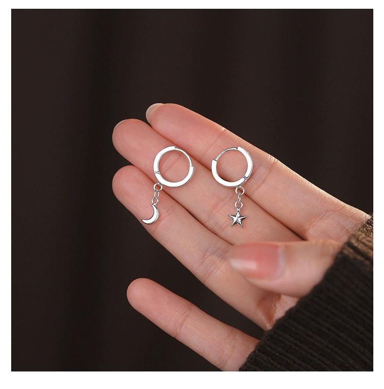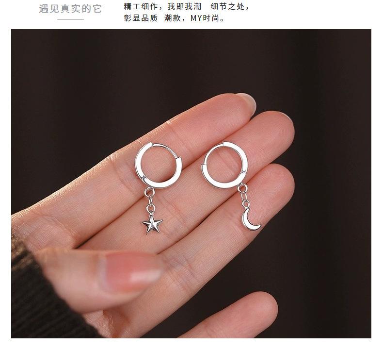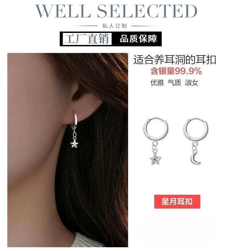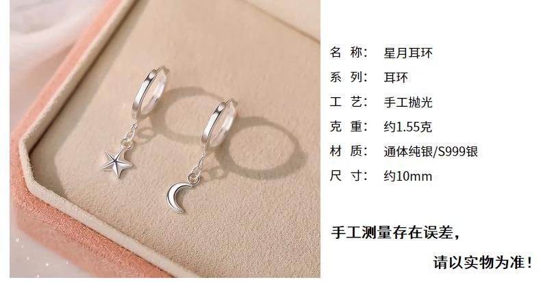 Pendientes de plata de ley 999 con forma de estrella y luna, con hebilla para las orejas, diseño de nicho para mujer, con agujeros para las orejas, joyería que combina con todo.
