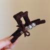 Clip de lazo grande de terciopelo francés retro para mujer, otoño e invierno, elegante, de alta calidad, con temperamento en la parte posterior, clip de tiburón, clip superior