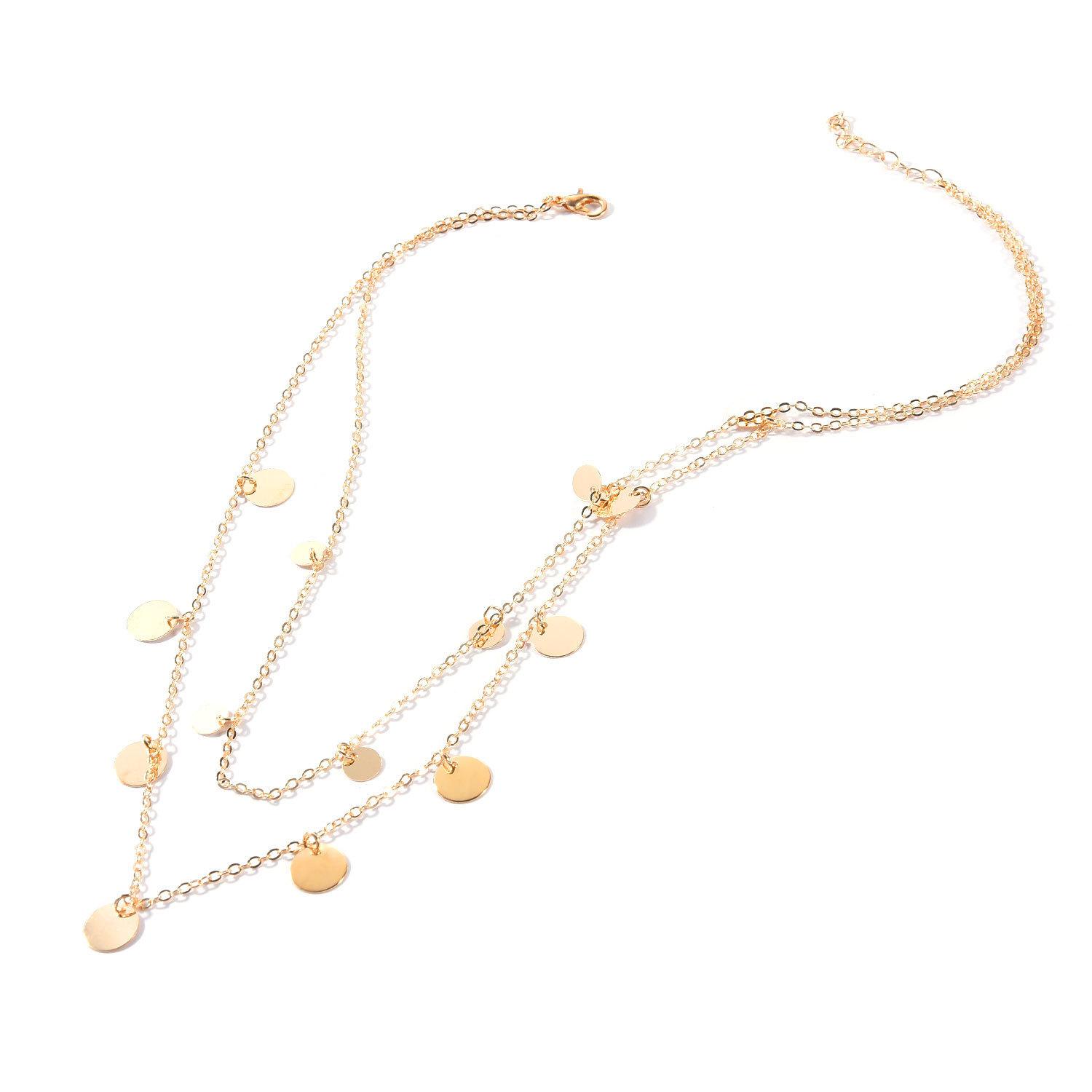 Collar de lentejuelas hecho a mano de doble capa de moda transfronteriza europea y americana, cadena de clavícula de moda urbana personalizada