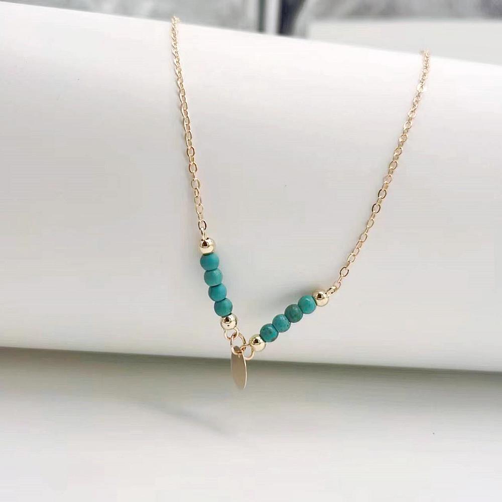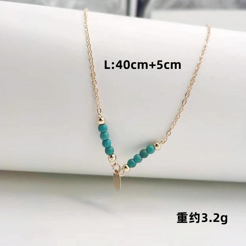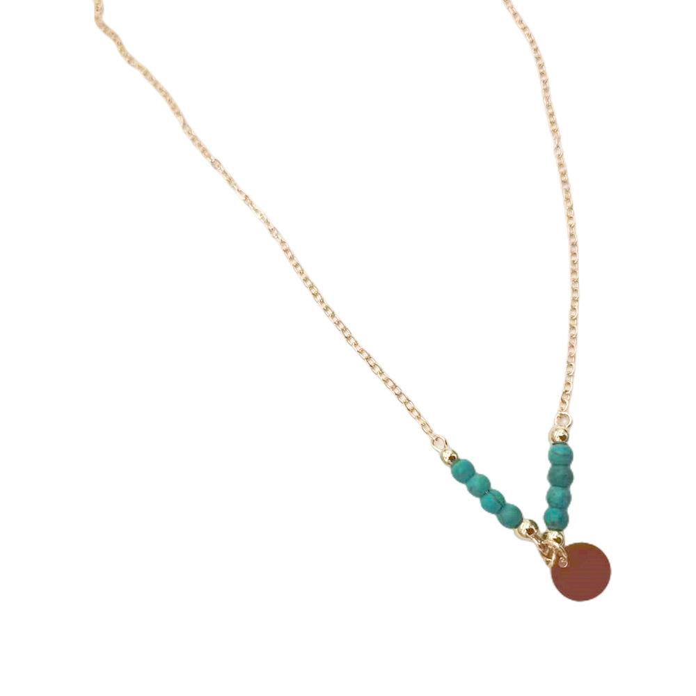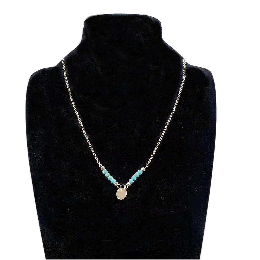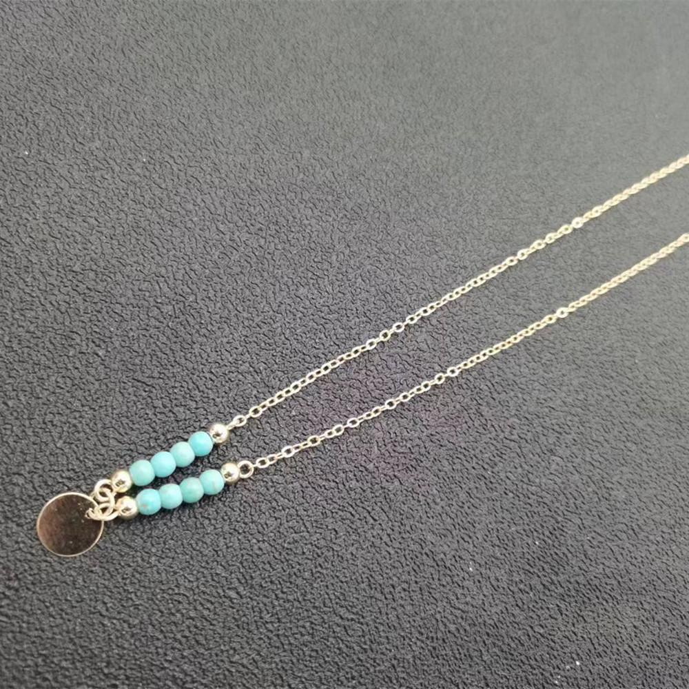 Collar corto retro de moda transfronteriza europea y americana para mujer, colgante sencillo con lentejuelas y cuentas turquesas.