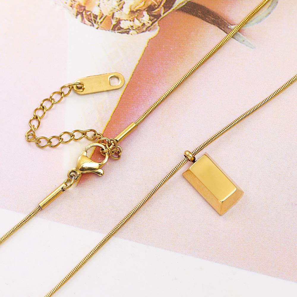 Collar con colgante de ladrillo dorado pequeño de acero de titanio, estilo simple y frío, estilo japonés y coreano, elegante cadena de clavícula para mujer