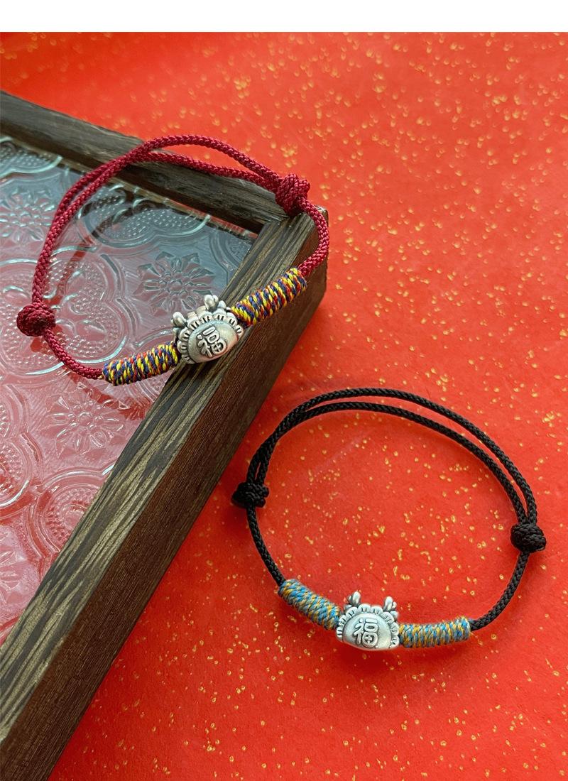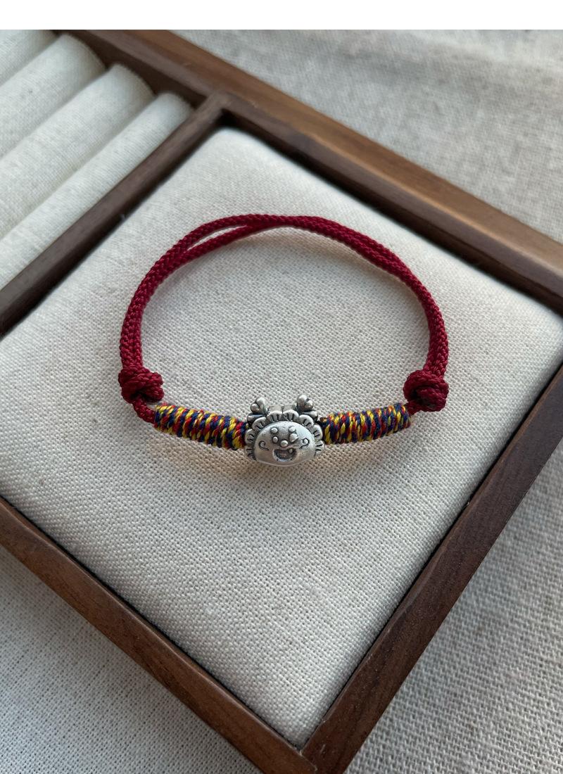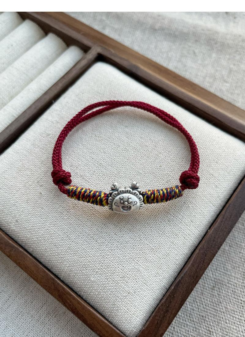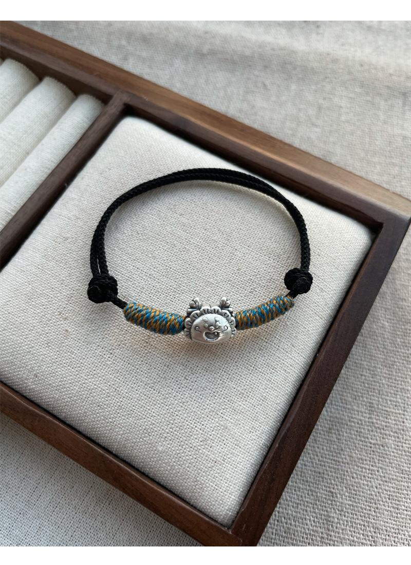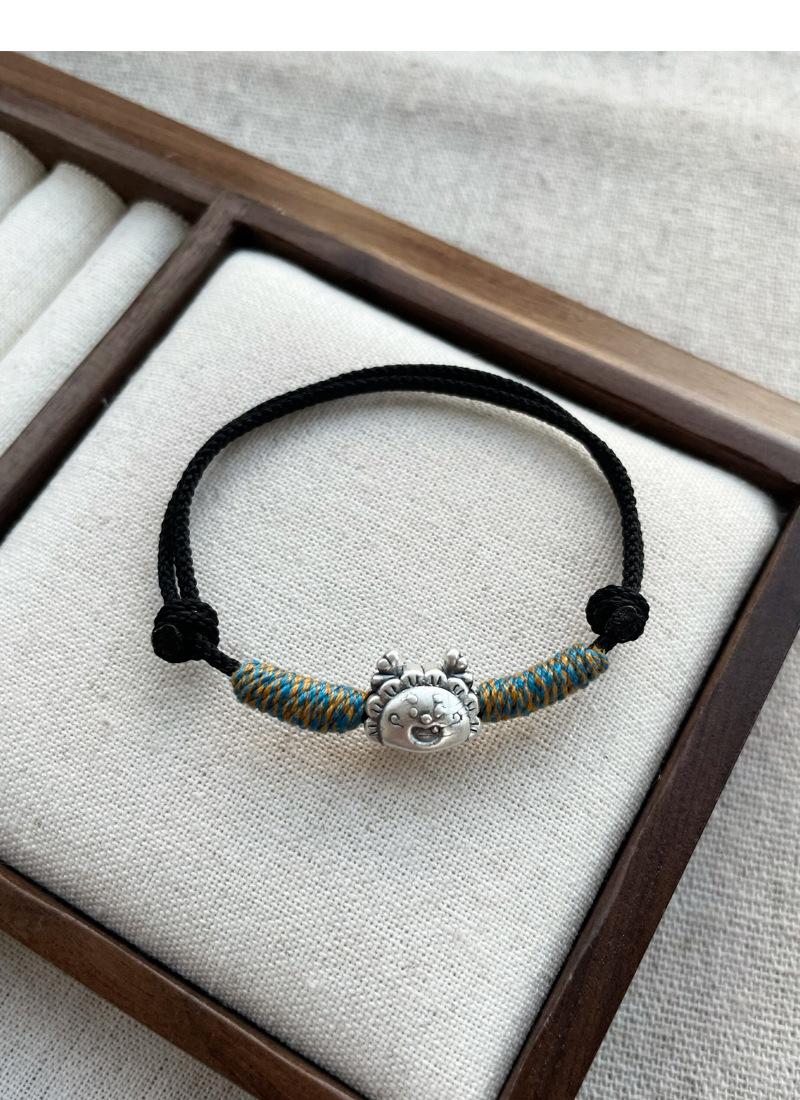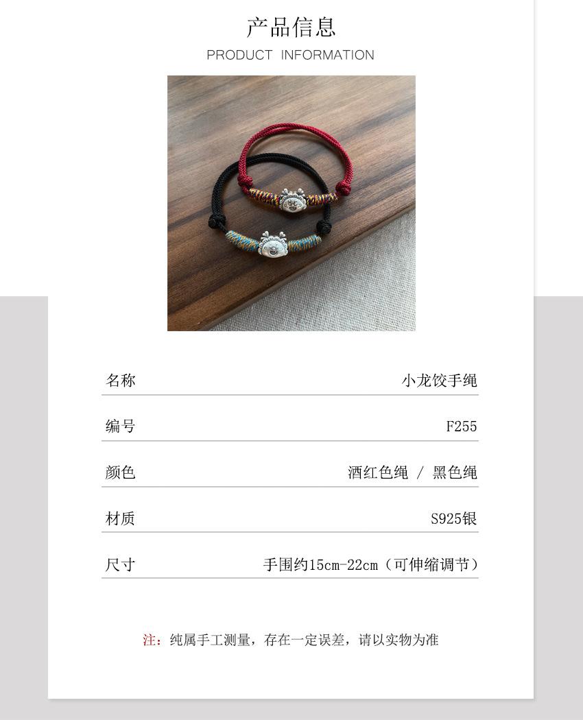 Plata pura S999 boca sonriente siempre abierta Pequeño Dragón dumpling pulsera tejida año del zodiaco pulsera para hombres y mujeres pulsera año del Dragón
